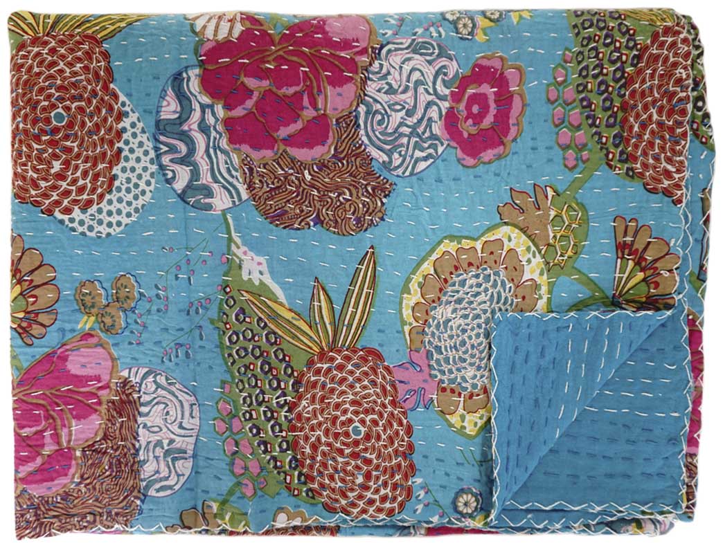 Our gorgeous Traditional Kantha Blanket is hand-embroidered by Bengali women following the centuries-long tradition of producing stunningly unique, quilted blankets. Note that each blanket is unique, and size of 60″ x 90″ is approximate.