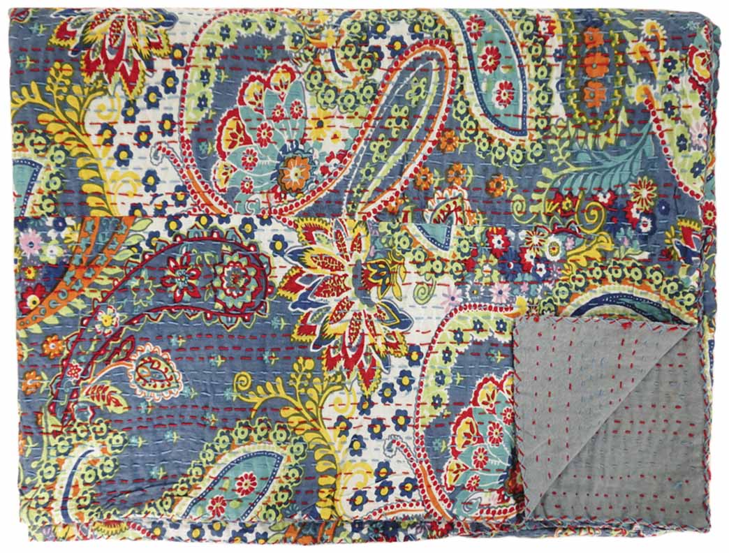New Kantha Blanket Blue/Grey