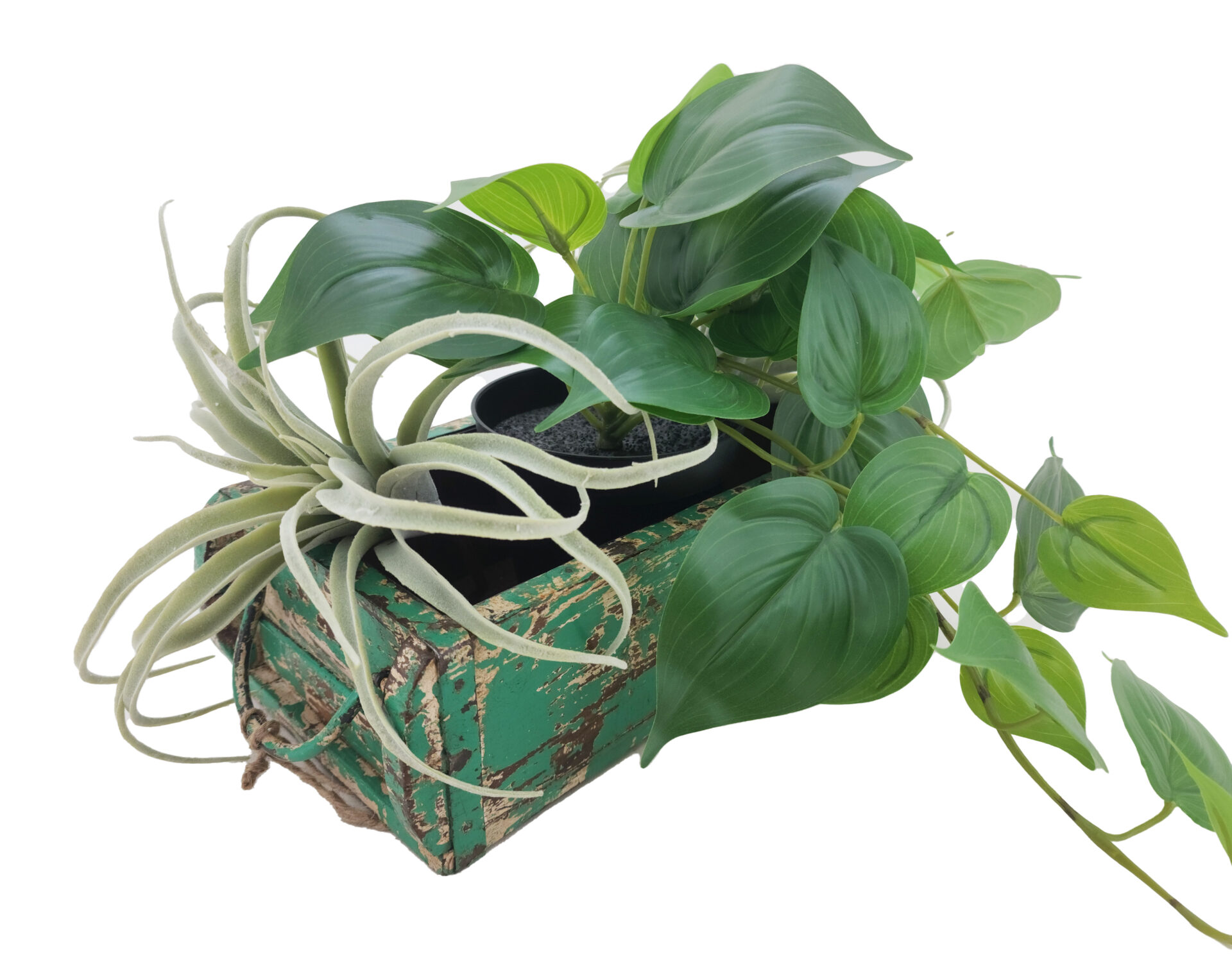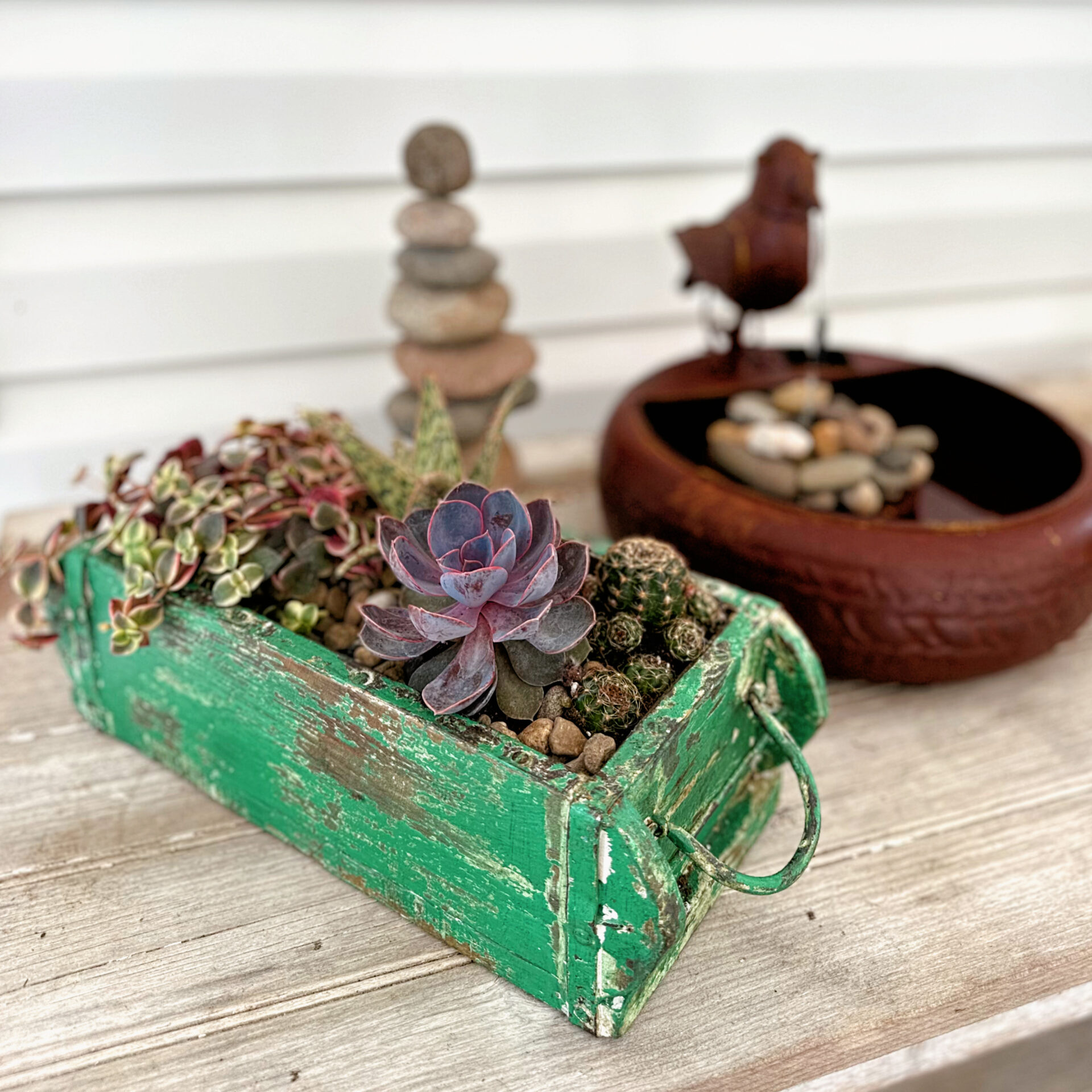Line your planter first if using live plants to prevent water damage.