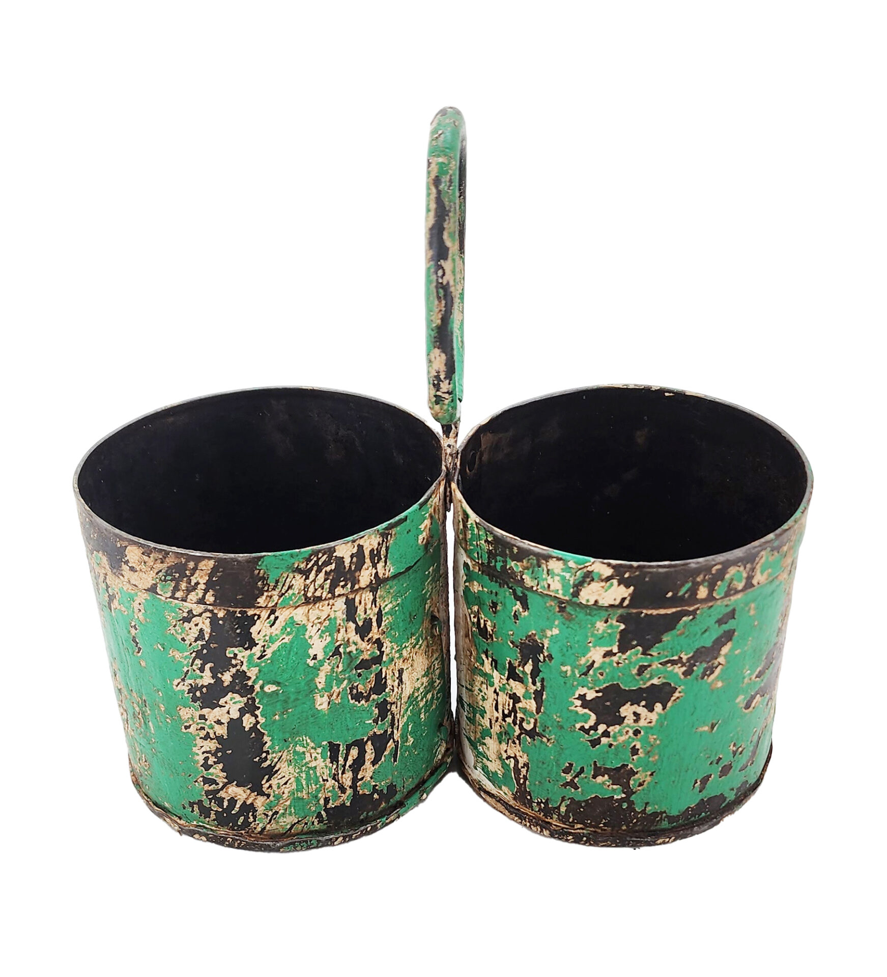 This Green Vintage-inspired Double Planter/Caddy has countless uses throughout your garden, kitchen, and patio. So why not add a little vintage charm into your home with this unique planter. These pots are made from recycled metal which means they are not perfect, but they are so unique!