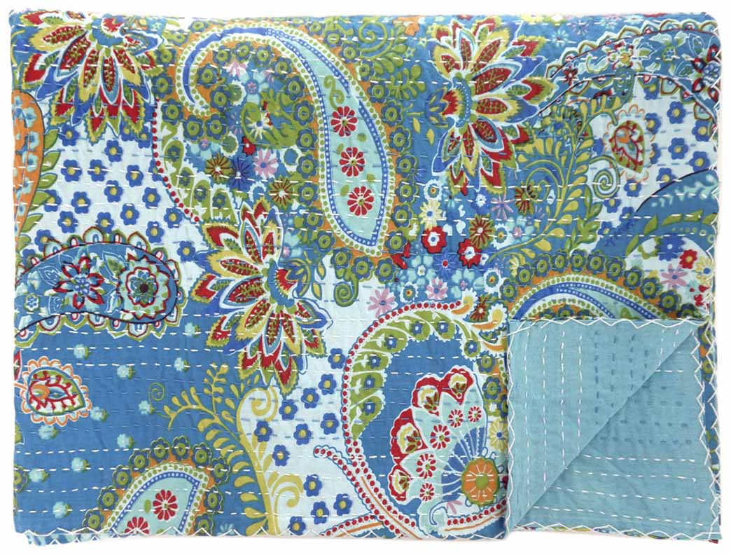 Our gorgeous Traditional Kantha Blanket is hand-embroidered by Bengali women following the centuries-long tradition of producing stunningly unique, quilted blankets. Note that each blanket is unique, and size of 60″ x 90″ is approximate.