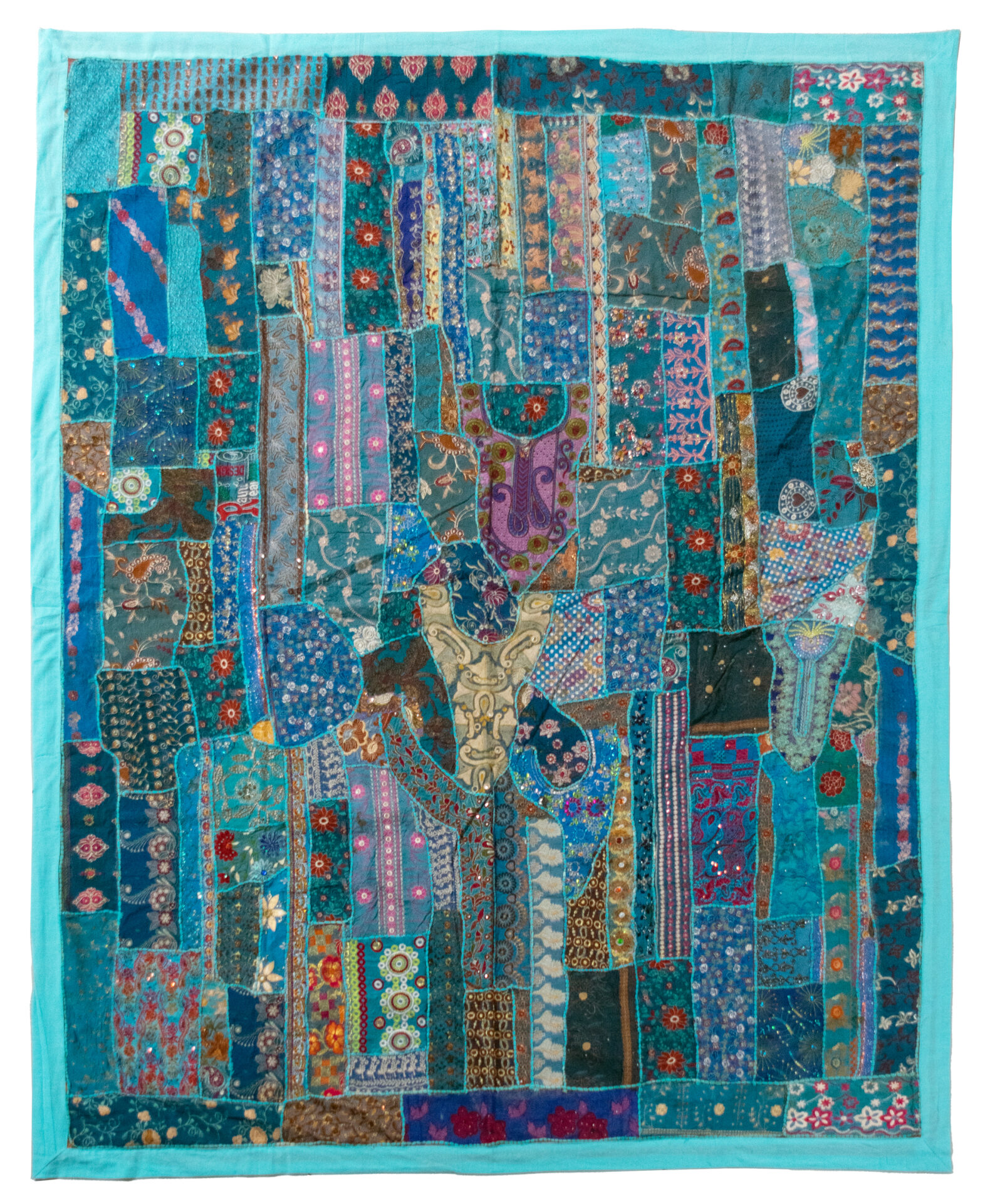 One of a KInd Vintage Quilt/Bed Cover-Turquoise Trim