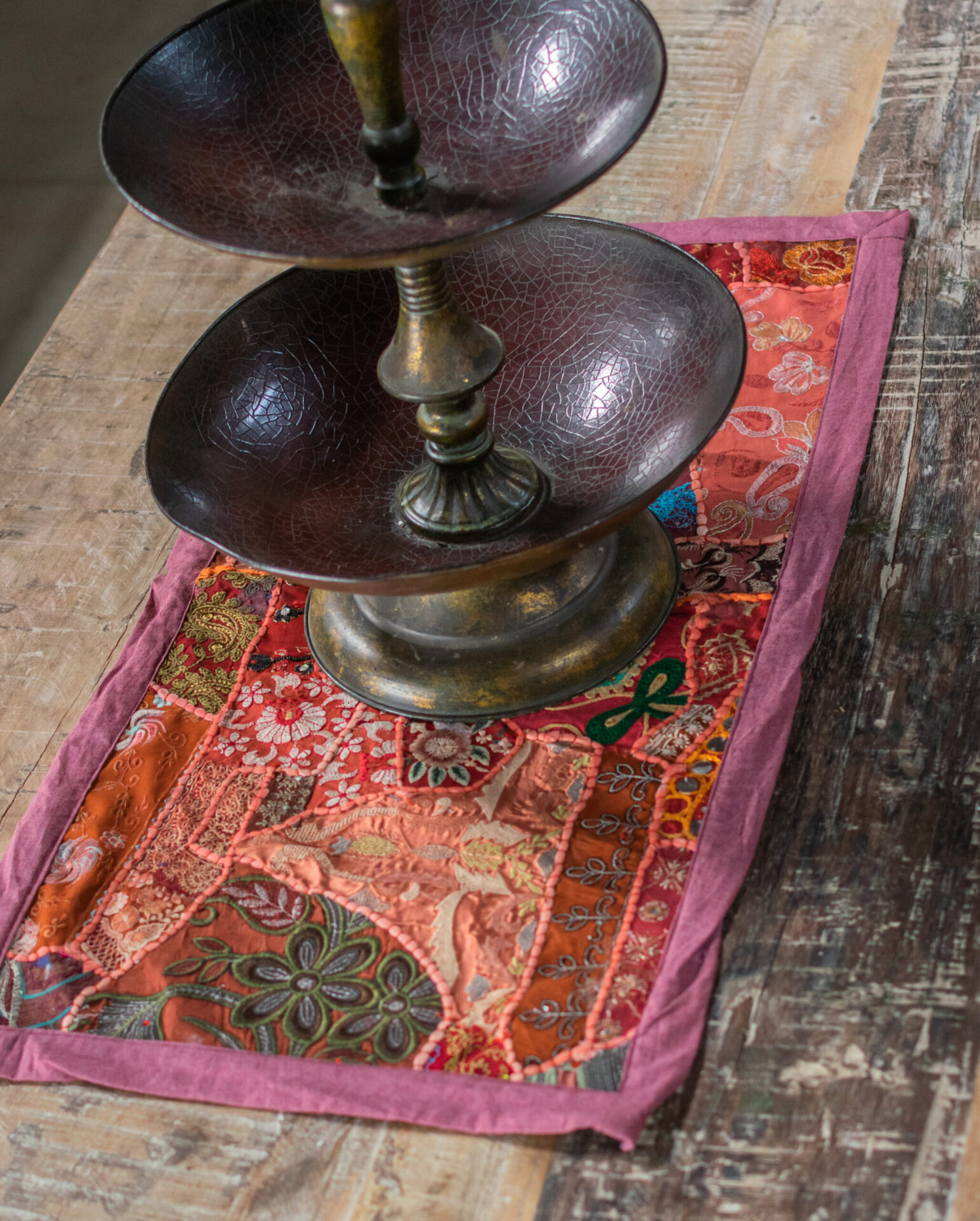 One of a Kind Vintage Textile Table Mat-Plum Trim