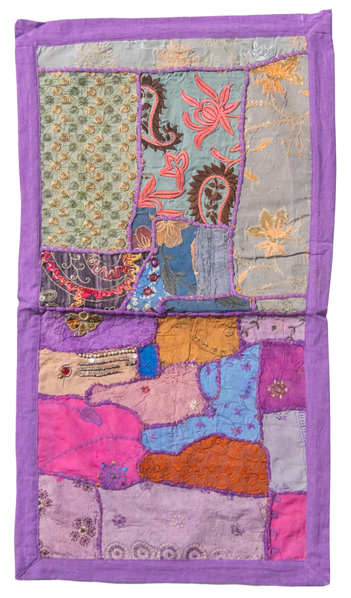 One of a Kind Vintage Textile Table Mat-Purple Trim