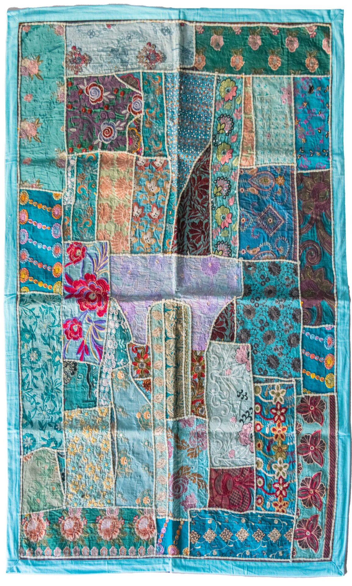 One of a Kind Vintage Textile Table Runner/Cover-Turquoise Trim