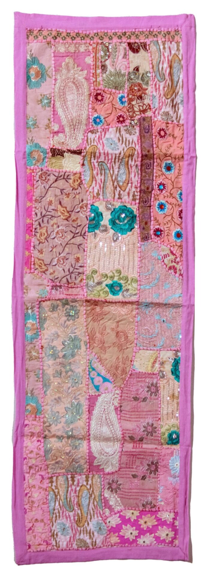 One of a Kind Vintage Textile Table Runner-Pink Trim