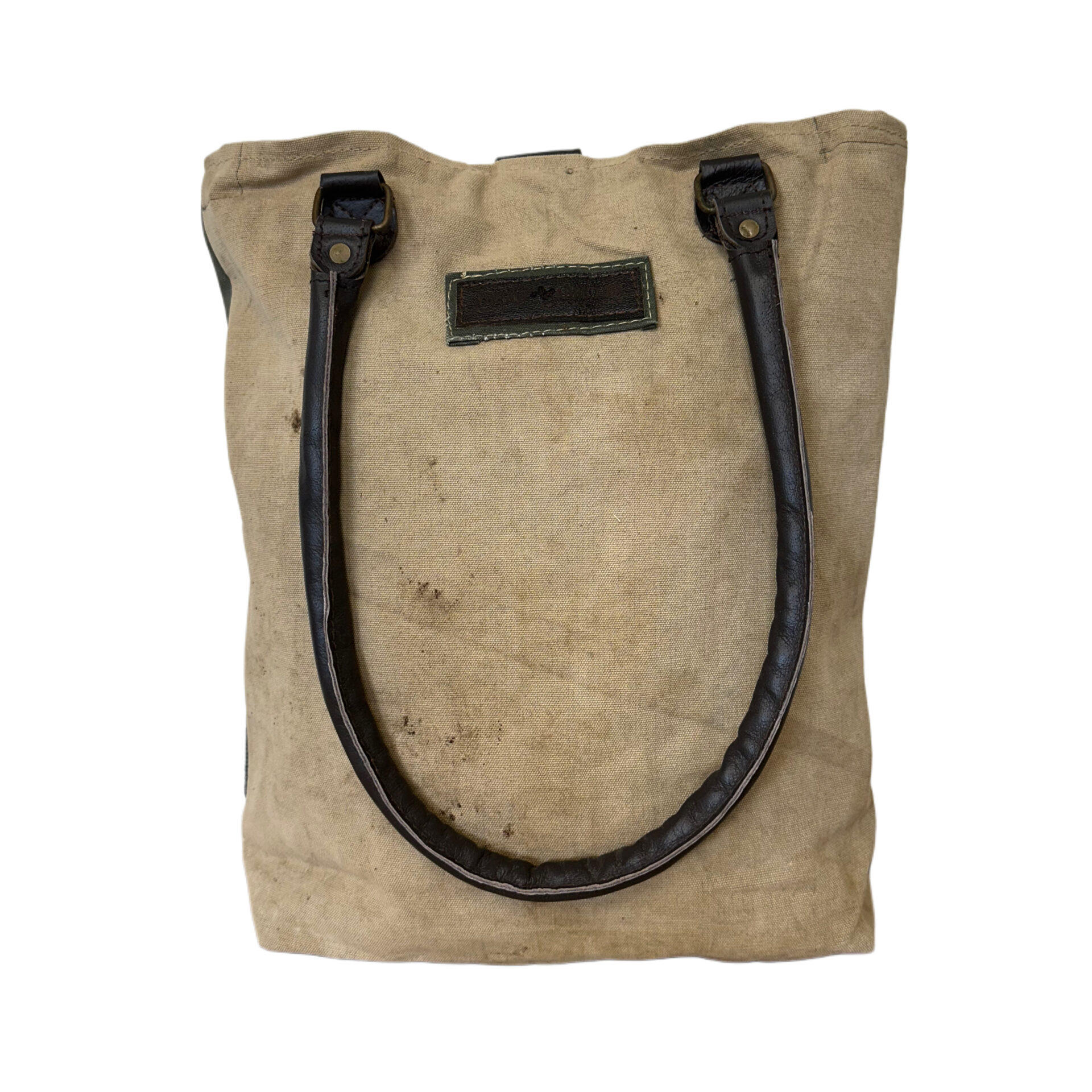 DISCLAIMER: Our recycled military tent bags are a tribute to and a reminder of the sacrifices and contributions of military veterans. Please know that these bags are made from authentic used military tents and are not brand new canvas packaged as recycled tents or tarps. THESE ARE THE REAL DEAL!! As a result, the tent material will show signs of worn-like imperfections which add to its character. Each bag has differences in genuine imperfections, stains, and colors. Your bag will be as unique as each soldier’s experience when seeking shelter in these tents whether in the training field or in a combat zone. Also note, that the vintage textiles and fabrics used to embellish this style will vary in color and design from bag to bag. Vintage fabrics will vary from photo to photo- no two are the same. Each one is truly “One of a kind”. (You will not receive the photographed bag).
