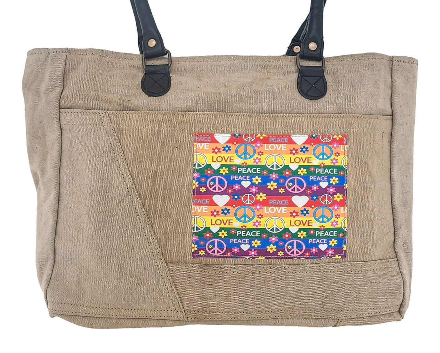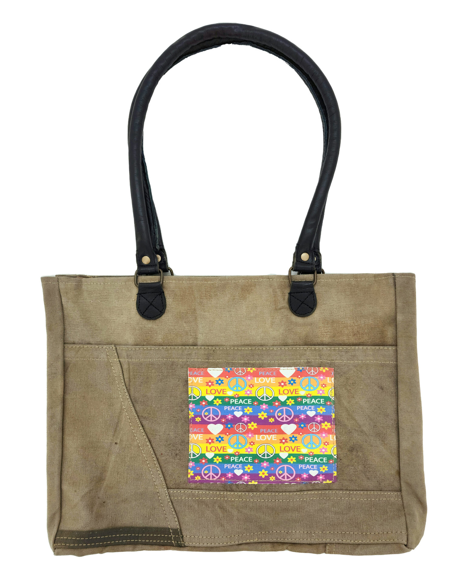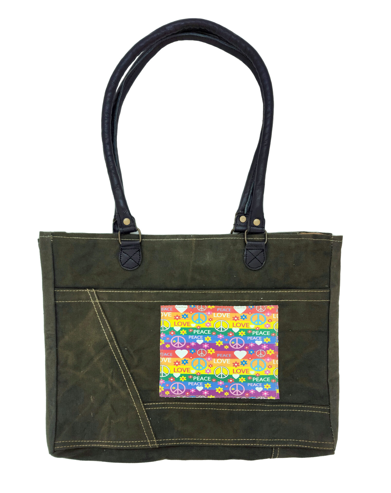 Peace, Love, Rainbow Recycled Military Tent Shoulder Bag