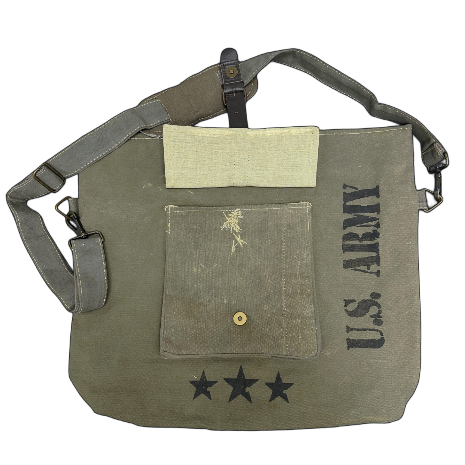 DISCLAIMER: Due to its recycled nature, fabric shows signs of worn-like imperfections which add to its character. There will be variations in color. Bag measurements: 18″ W x 17″ H x 4″ Base / Adjustable Shoulder Strap 56” L
