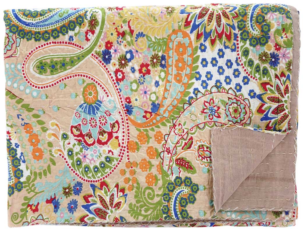Our gorgeous Traditional Kantha Blanket is hand-embroidered by Bengali women following the centuries-long tradition of producing stunningly unique, quilted blankets. Note that each blanket is unique, and size of 60″ x 90″ is approximate.