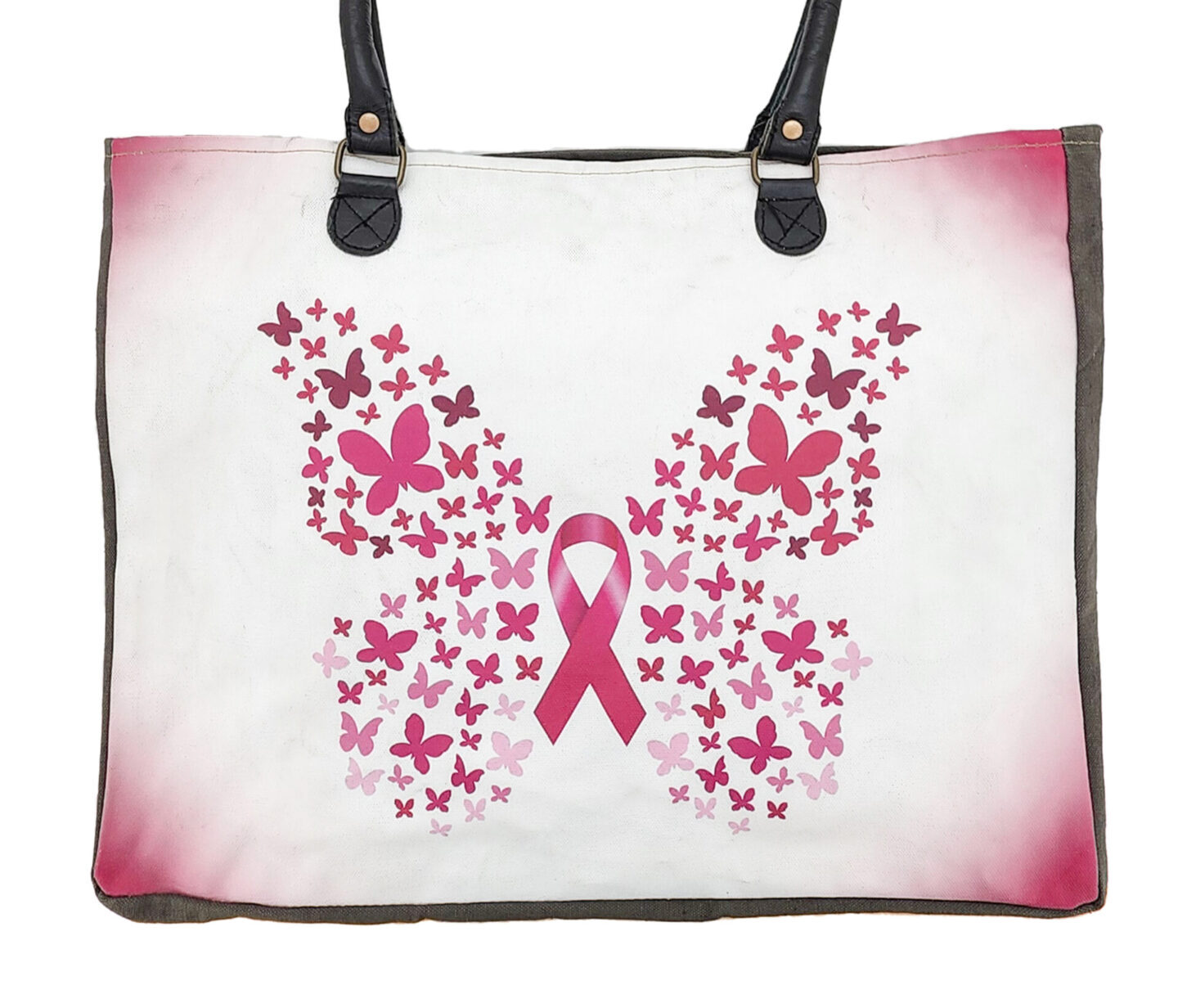 Pink Ribbon Butterfly Recycled Tent Market Tote