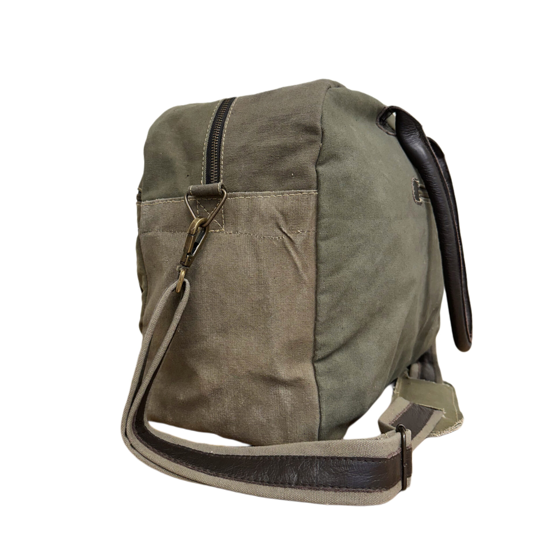 DISCLAIMER: Our recycled military tent bags are a tribute to and a reminder of the sacrifices and contributions of military veterans. Please know that these bags are made from authentic used military tents and are not brand new canvas packaged as recycled tents or tarps. THESE ARE THE REAL DEAL!! As a result, the tent material will show signs of worn-like imperfections which add to its character. Each bag has differences in genuine imperfections, stains, and colors. Your bag will be as unique as each soldier’s experience when seeking shelter in these tents whether in the training field or in a combat zone. All Sales are Final.