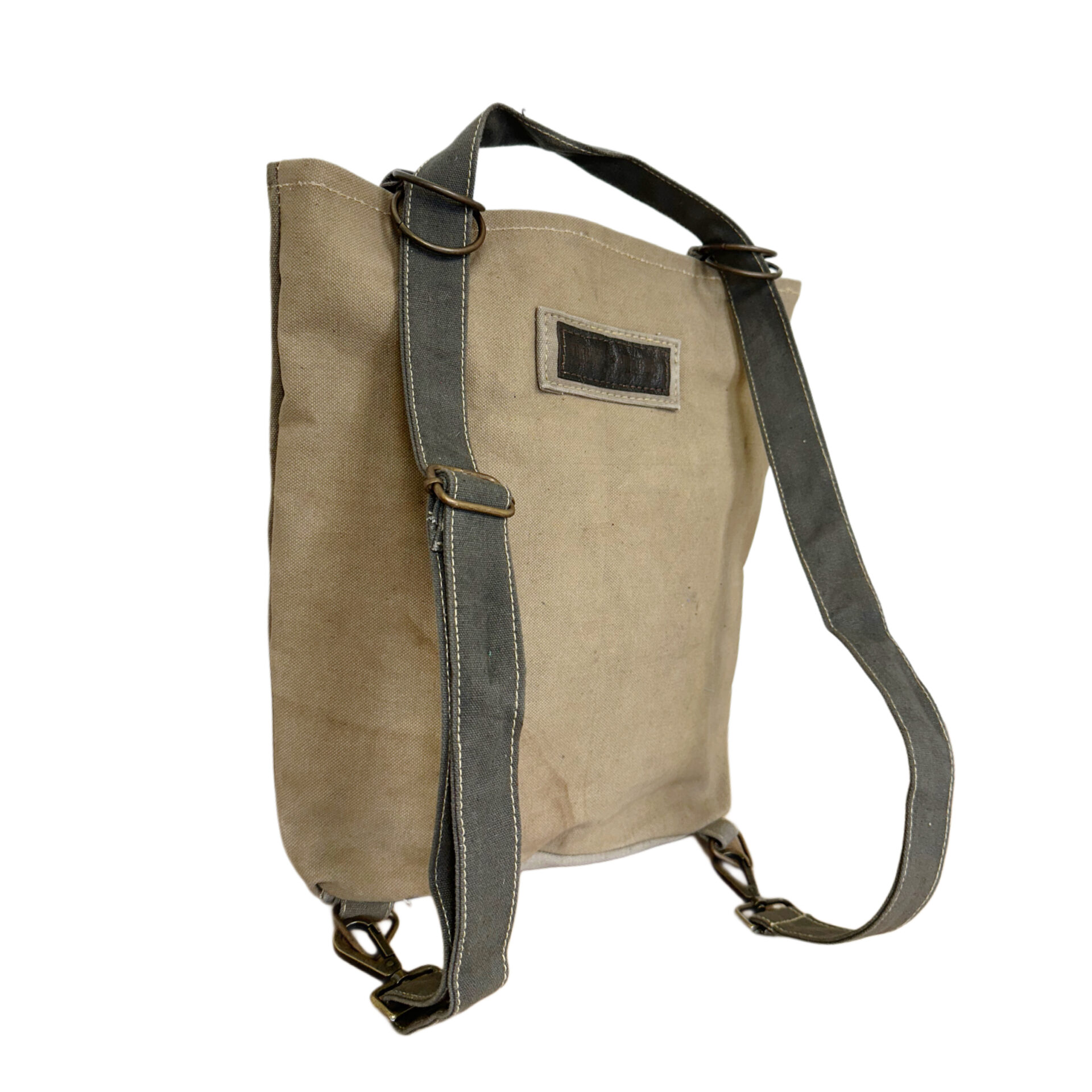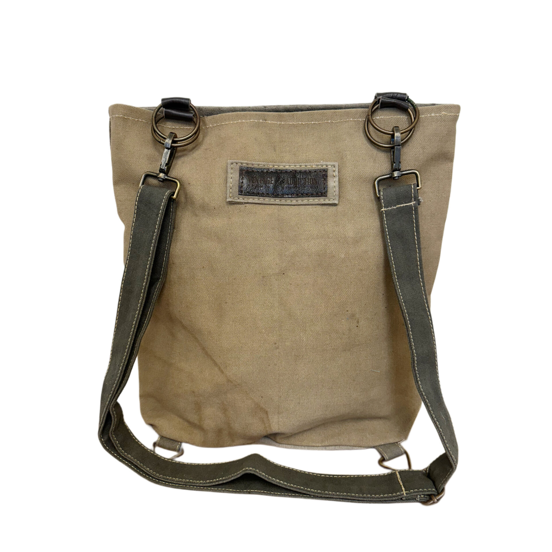 Recycled Military Tent Backpack/Crossbody with Vintage Fabric Accents-03