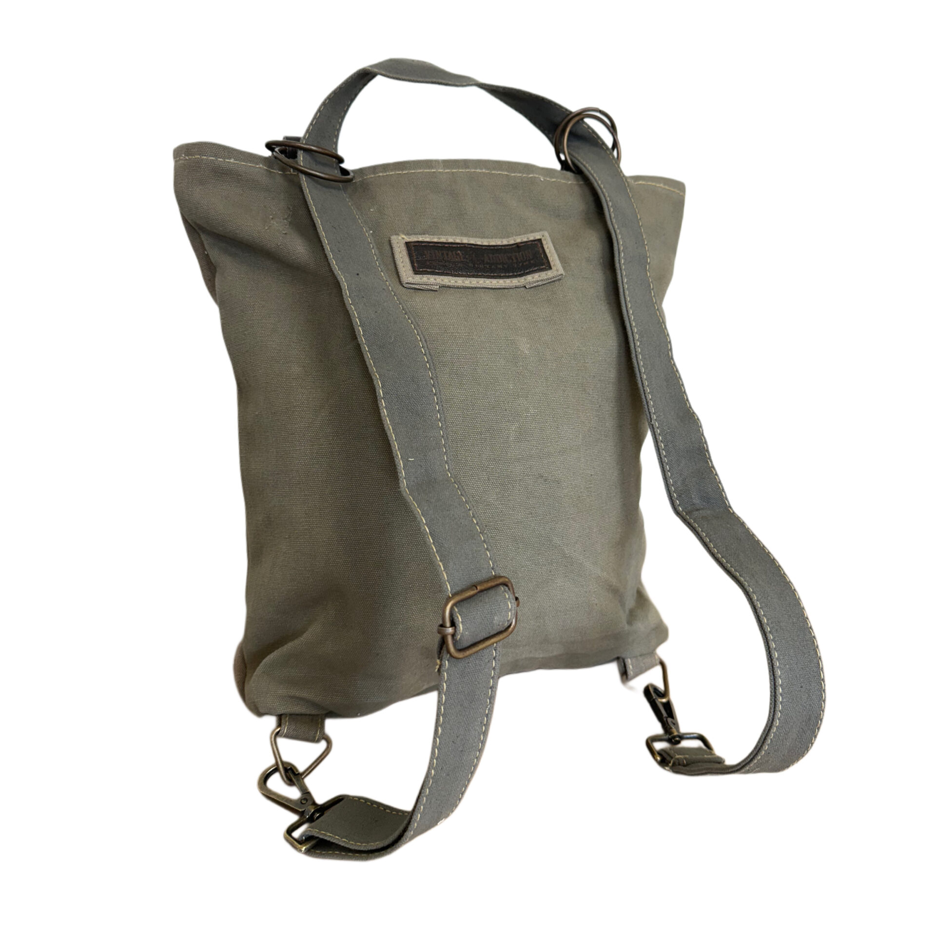 Recycled Military Tent Backpack/Crossbody with Vintage Fabric Accents-02