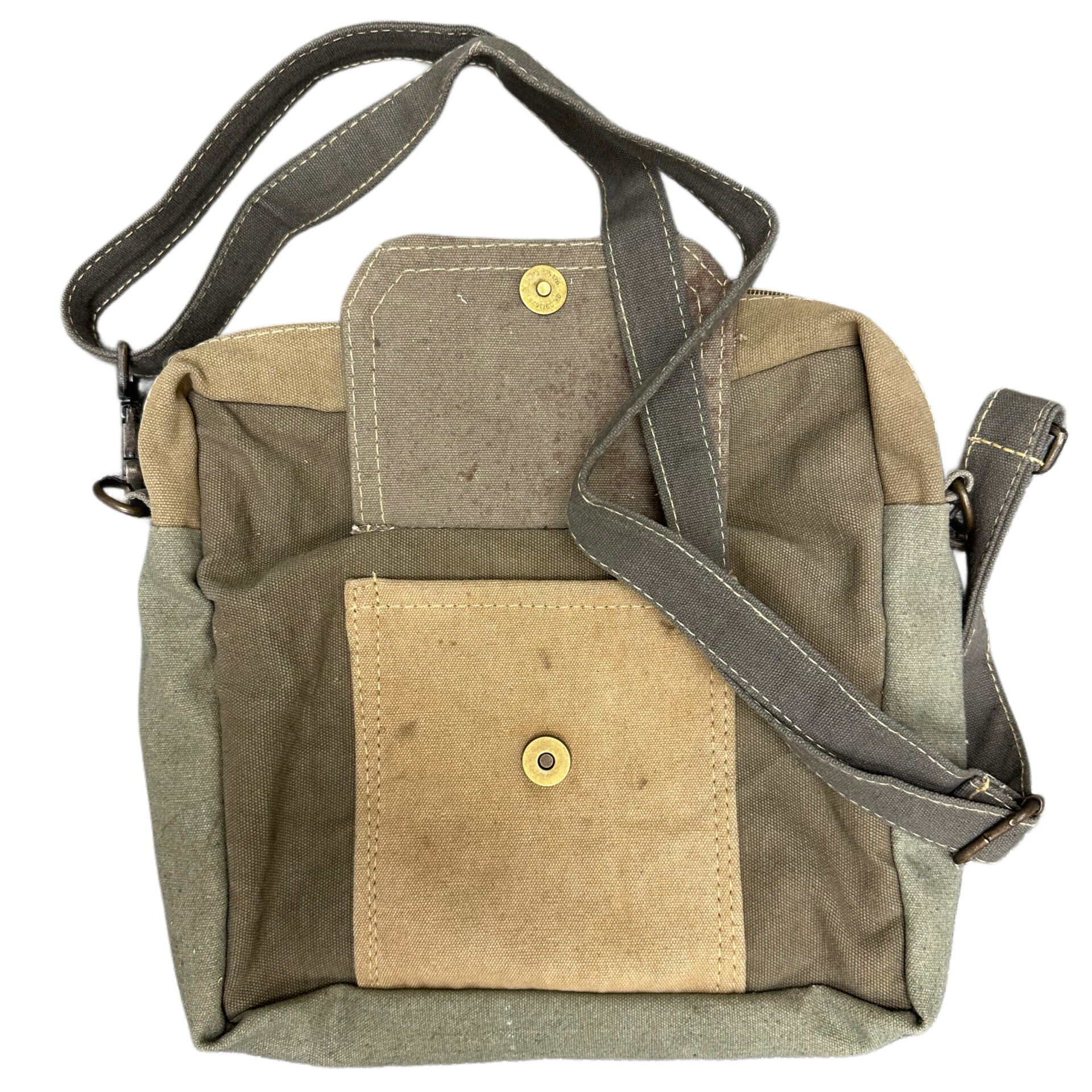 DISCLAIMER: Our recycled military tent bags are a tribute to and a reminder of the sacrifices and contributions of military veterans. Please know that these bags are made from authentic used military tents and are not brand new canvas packaged as recycled tents or tarps. THESE ARE THE REAL DEAL!! As a result, the tent material will show signs of worn-like imperfections which add to its character. Each bag has differences in genuine imperfections, stains, and colors. Your bag will be as unique as each soldier’s experience when seeking shelter in these tents whether in the training field or in a combat zone.