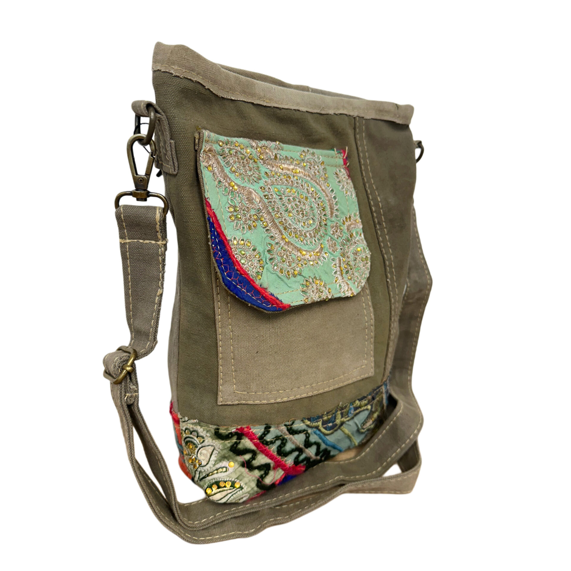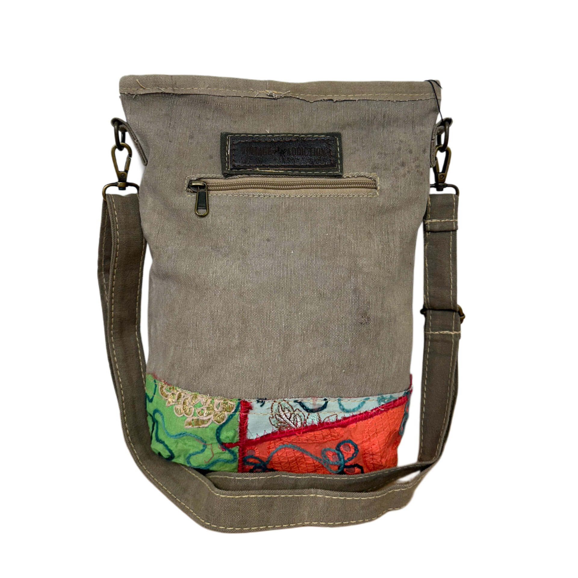 Recycled Military Tent Crossbody with Vintage Fabric Accent & Front Pocket-25