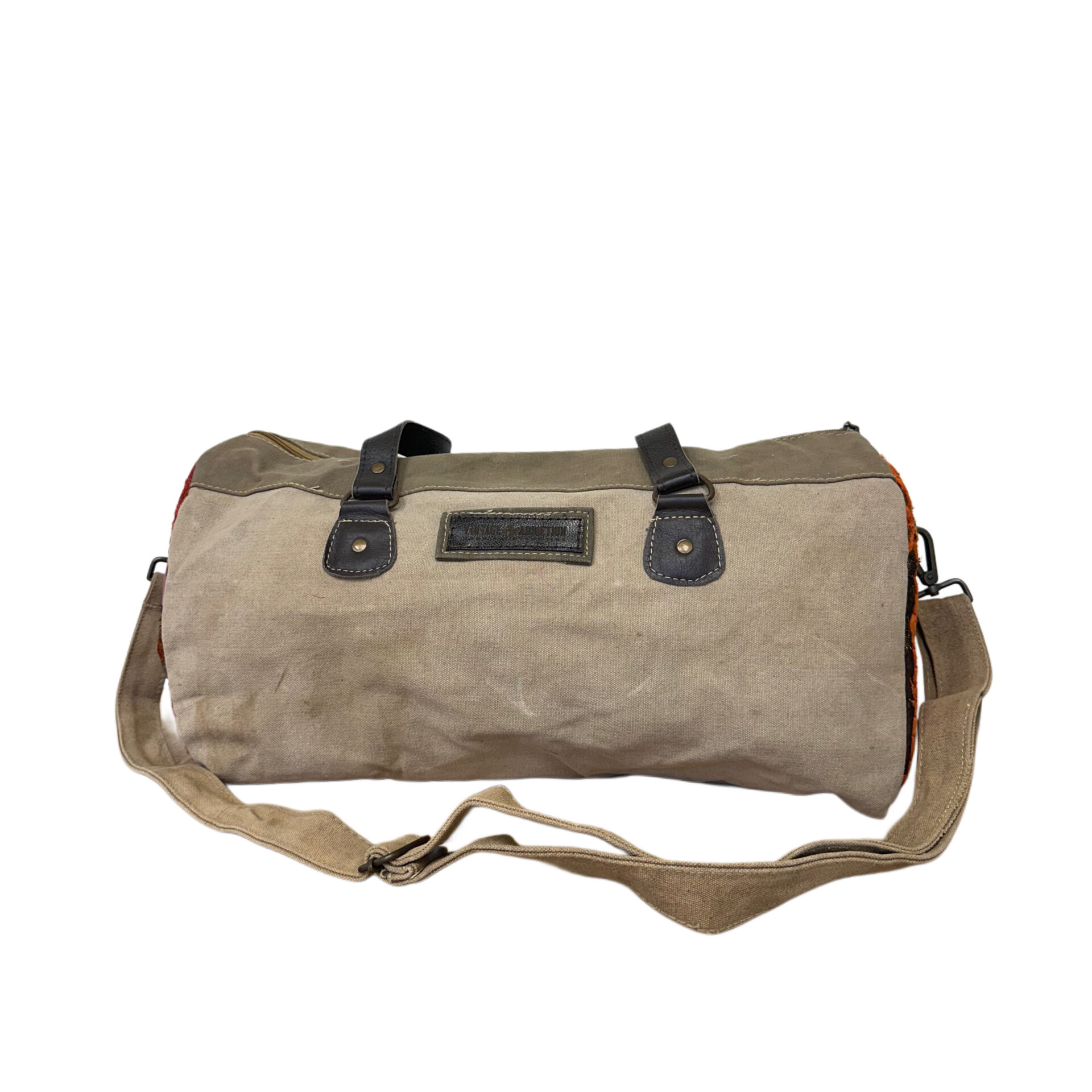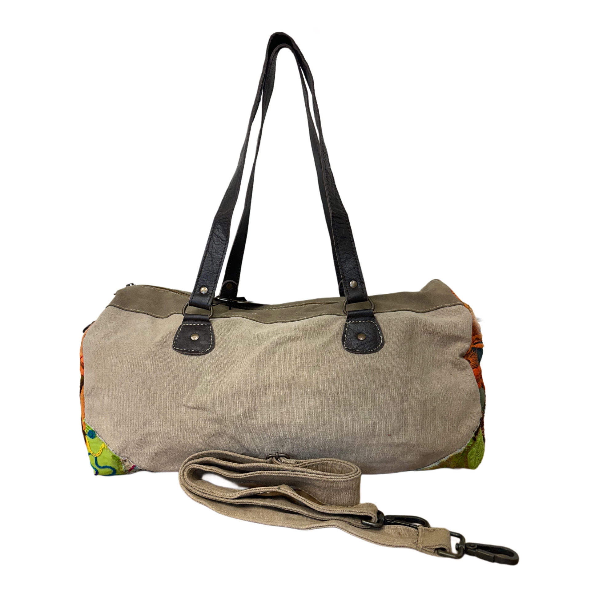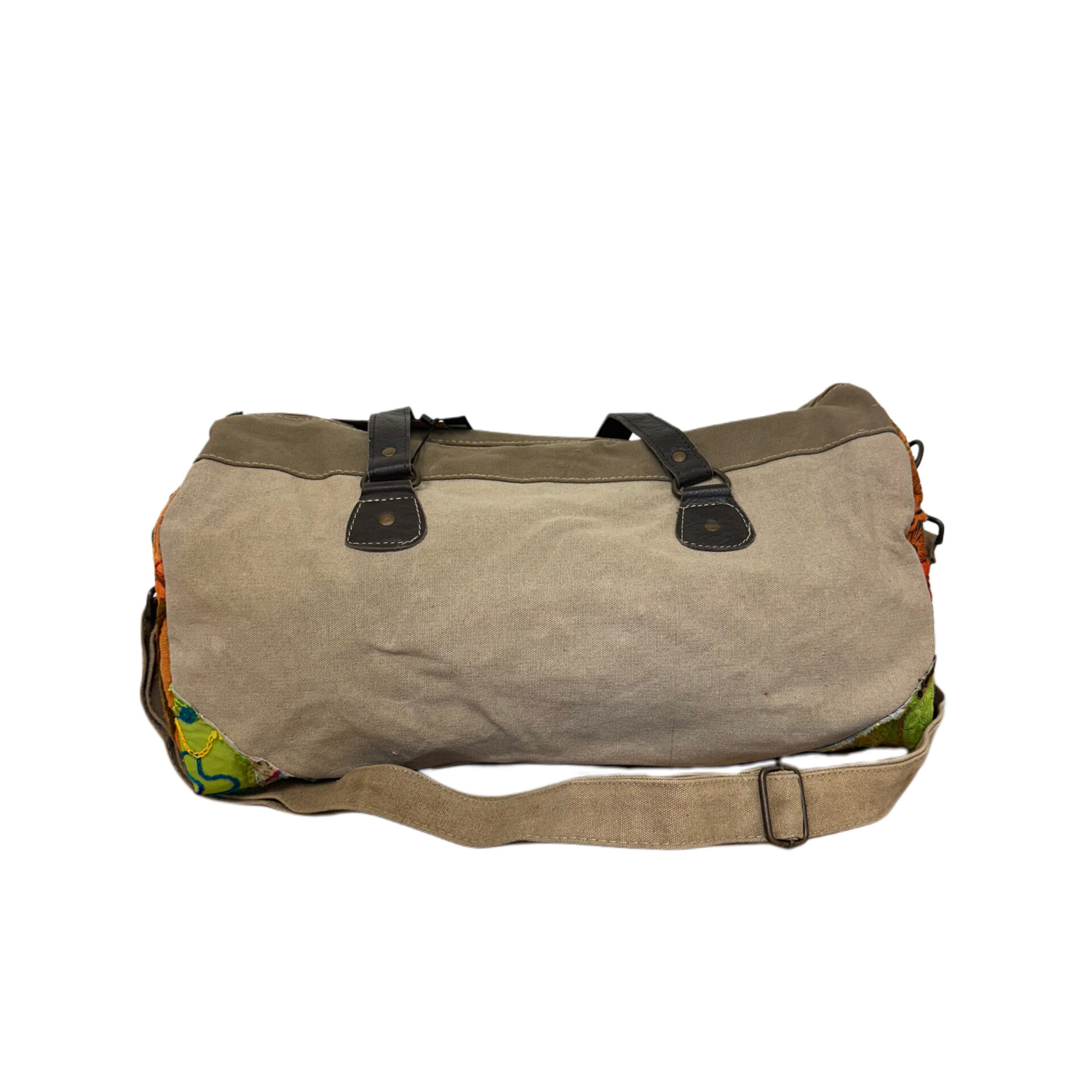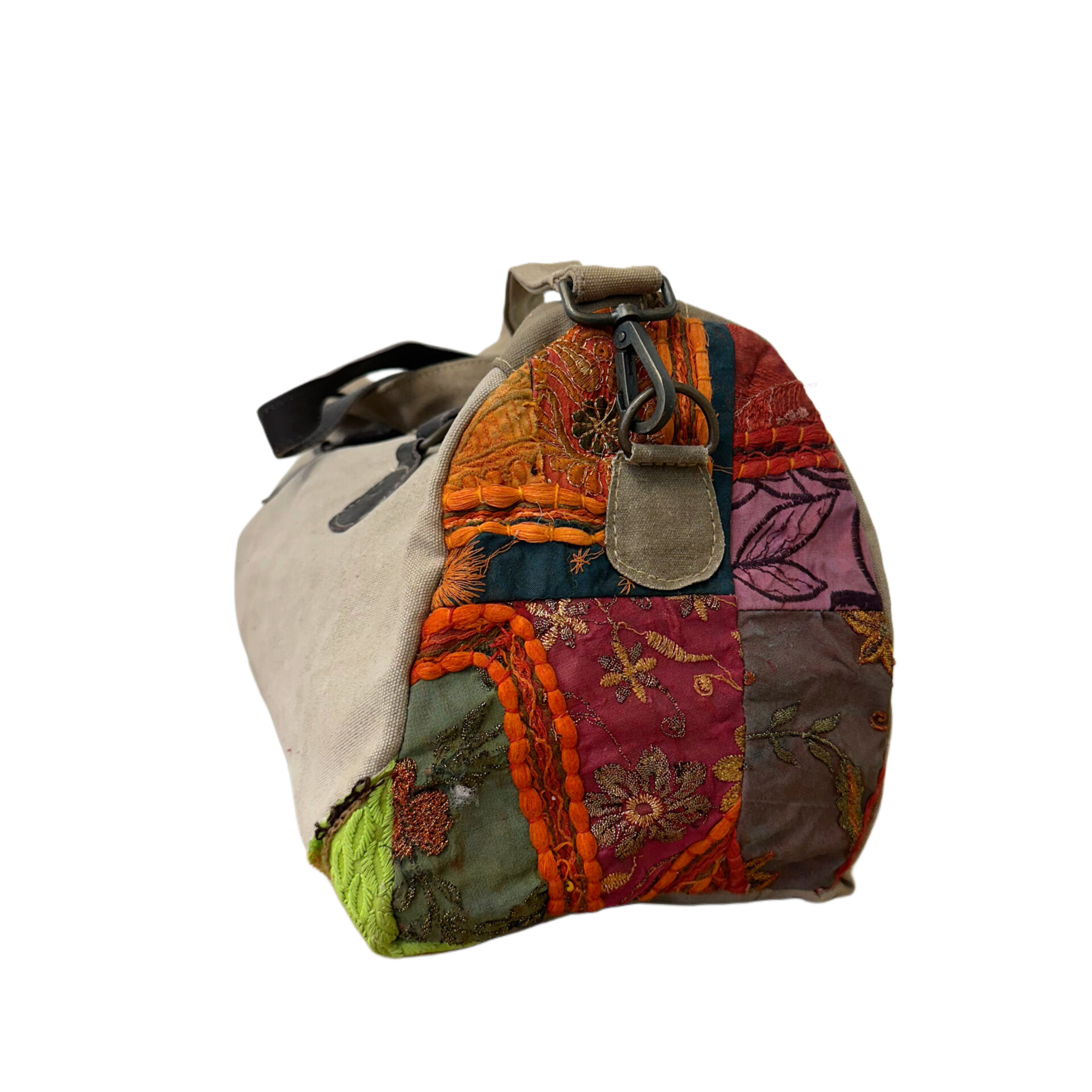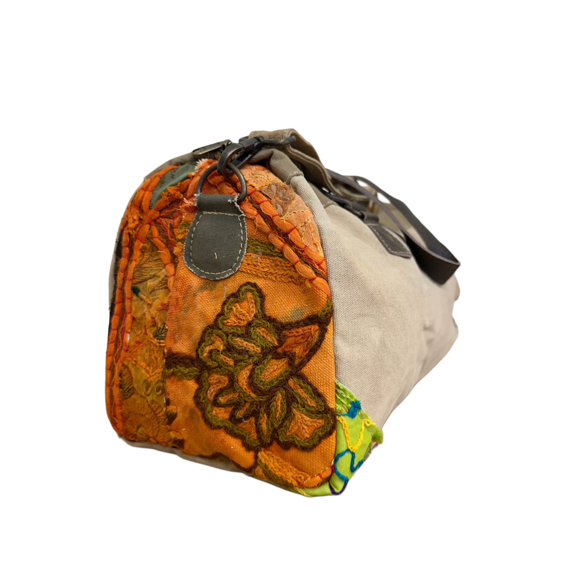Recycled Military Tent Overnight Duffle/Crossbody Bag w/Vintage Textiles-05