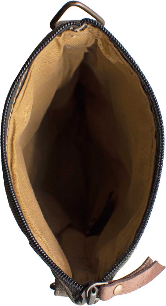 Cute small recycled military tent crossbody adorned with a print patch on the front. Perfect to carry the very basics!