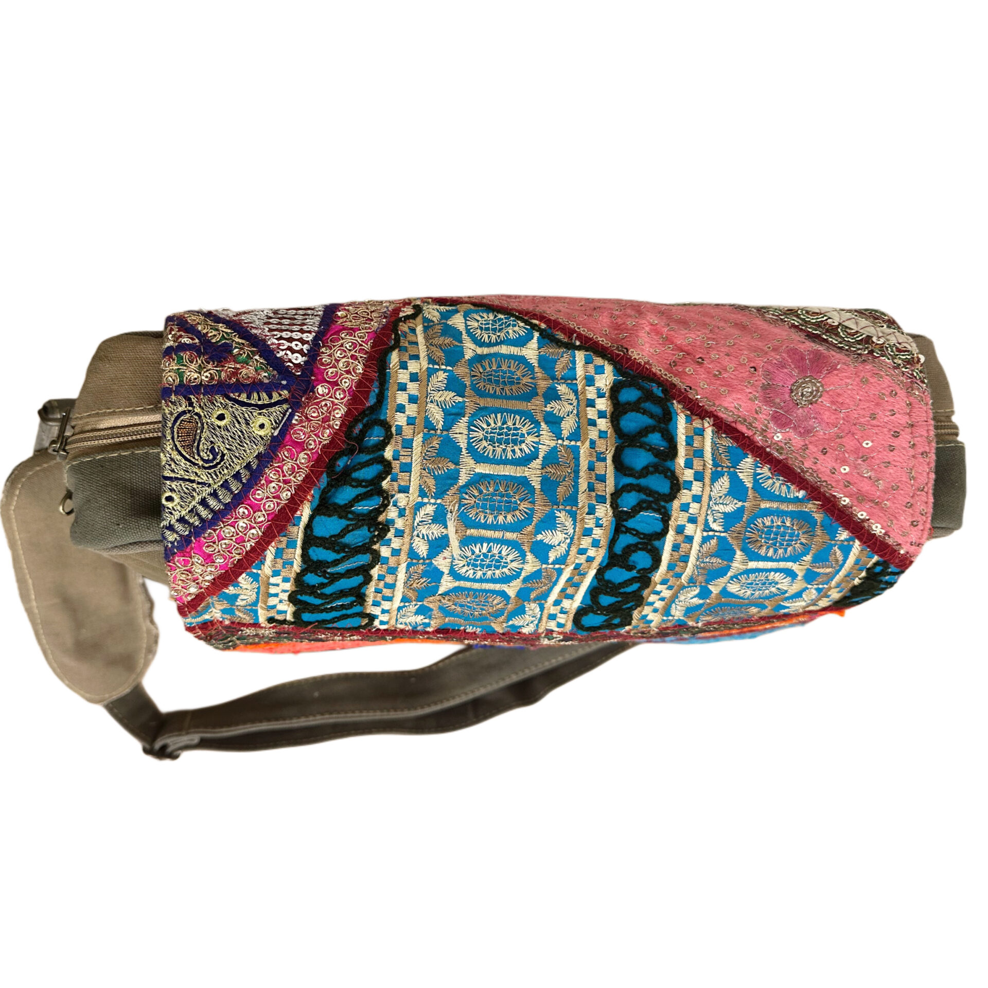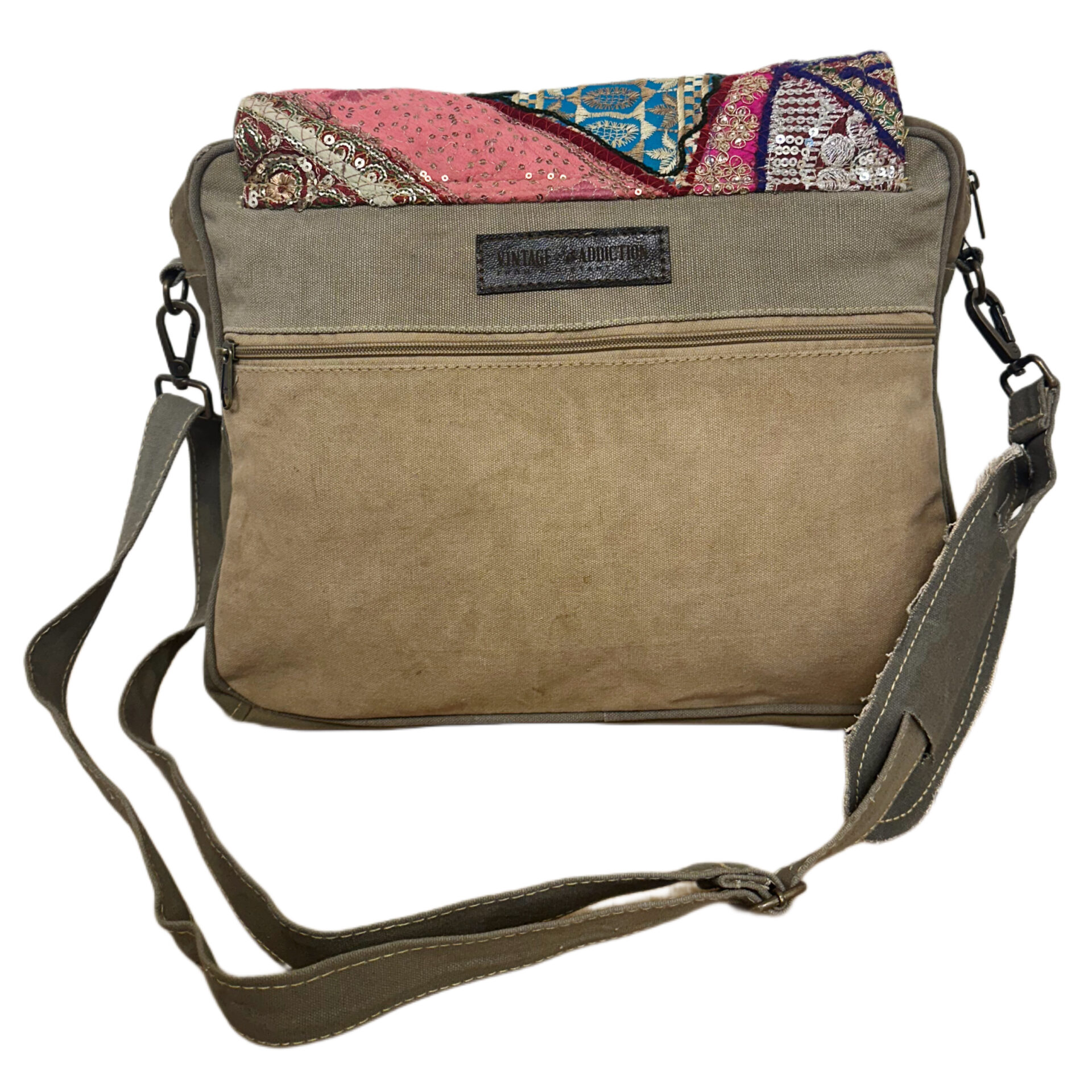 Vintage Fabric & Recycled Military Tent Messenger Bag-06