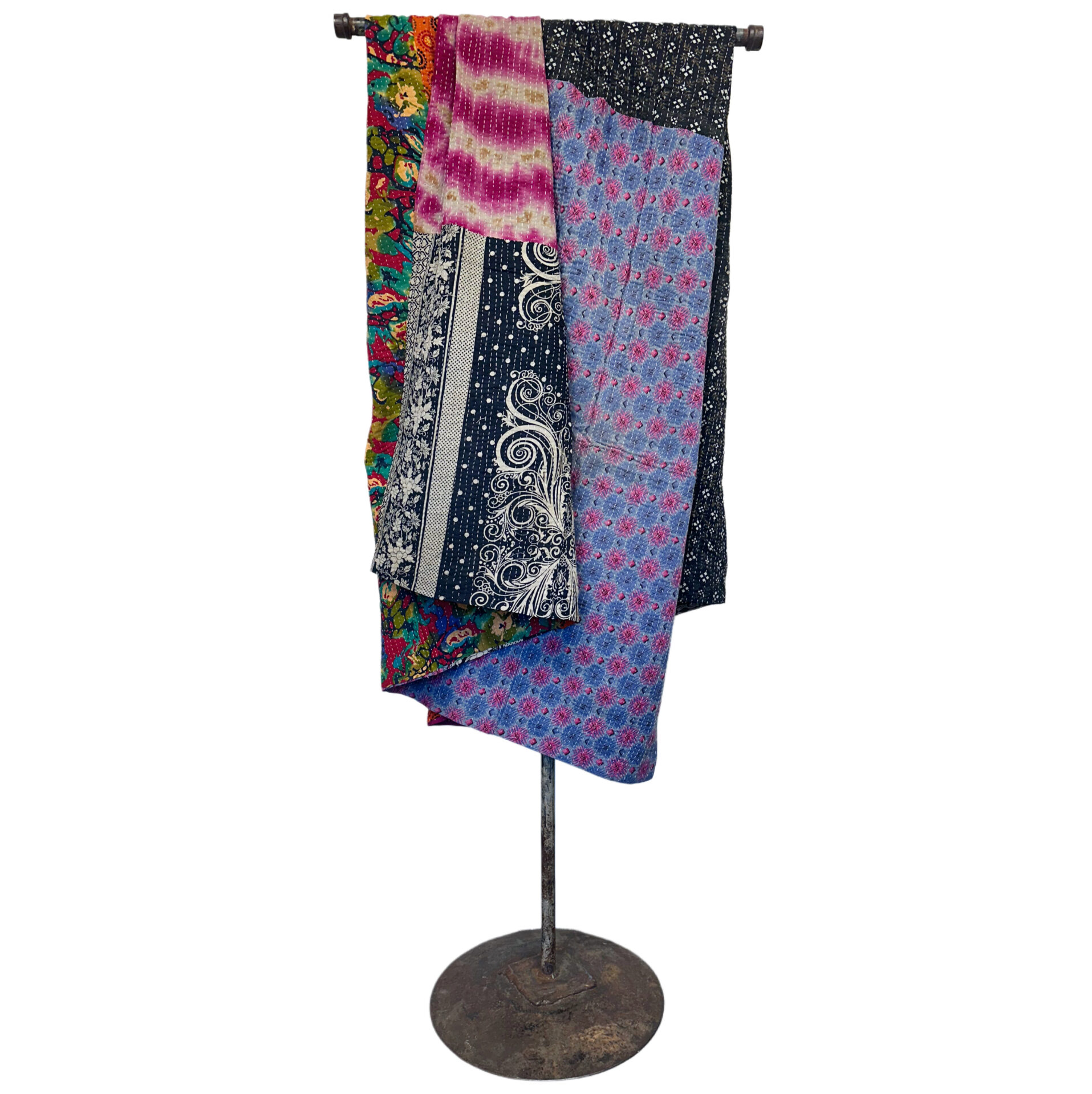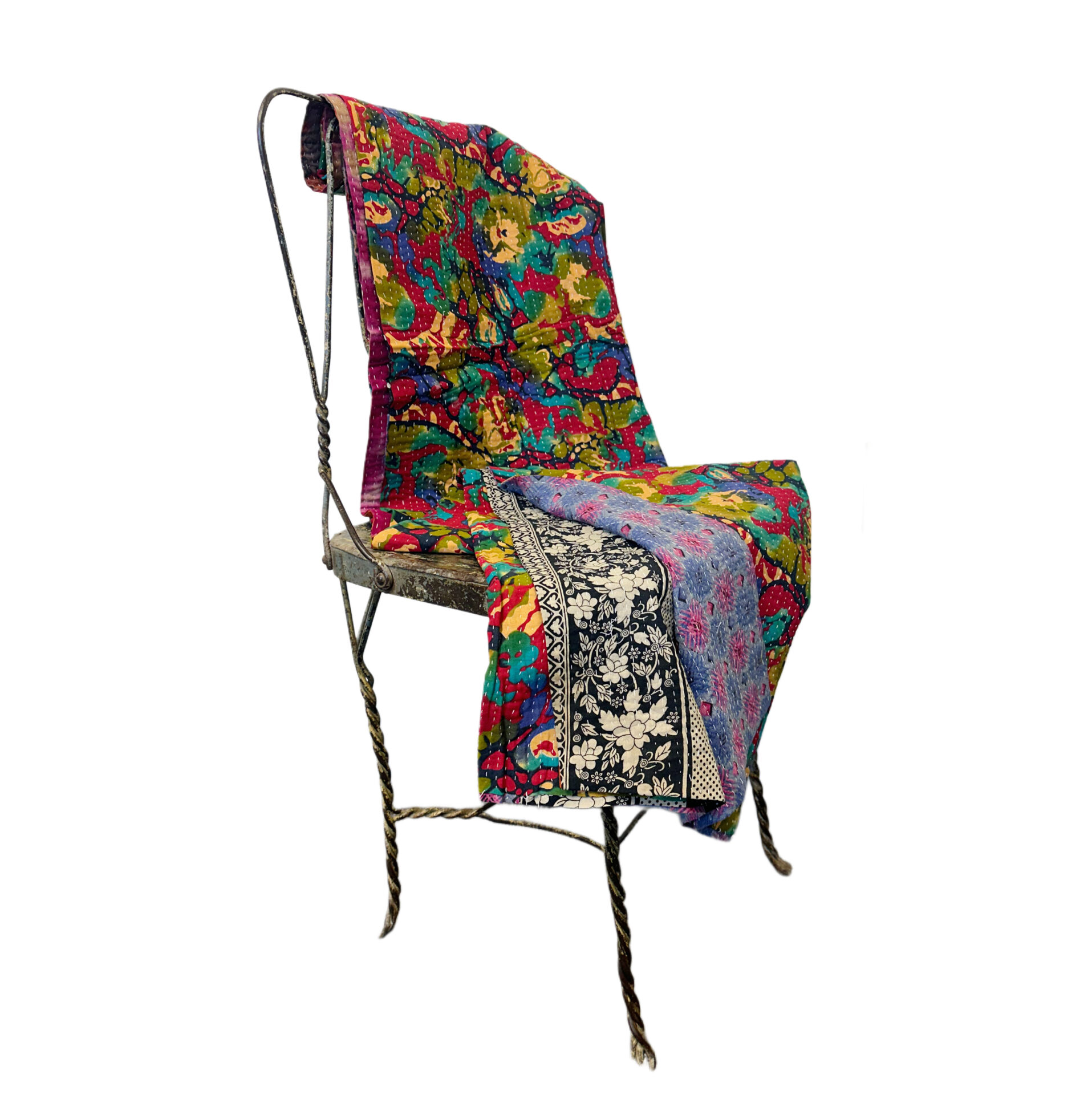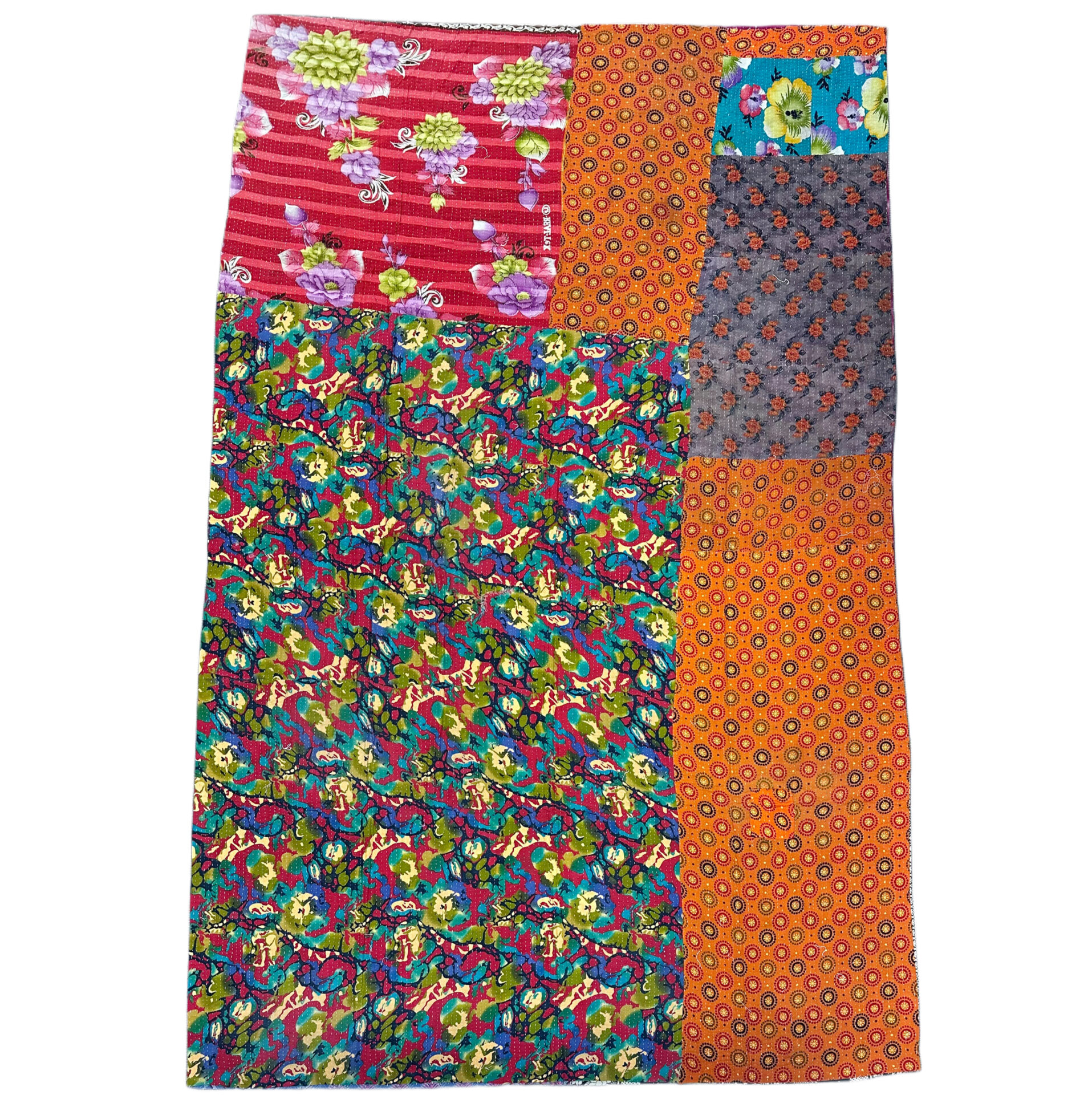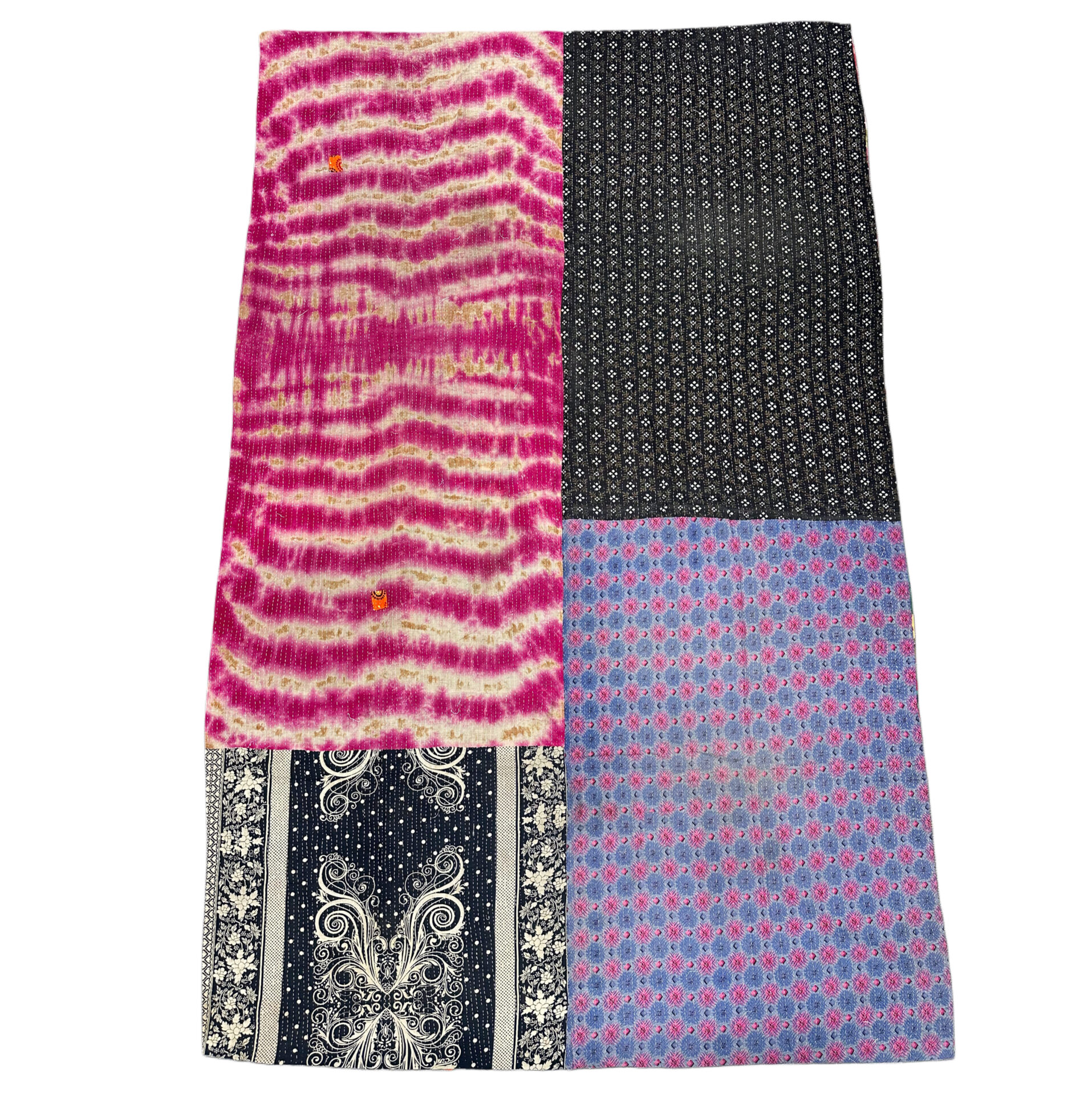 This is the exact Kantha blanket you’ll receive—individually selected, photographed, and ready to ship. Hand-stitched by Bengali women using layers of reclaimed cloth, each piece is part of a long-standing tradition that gives new life to discarded textiles.