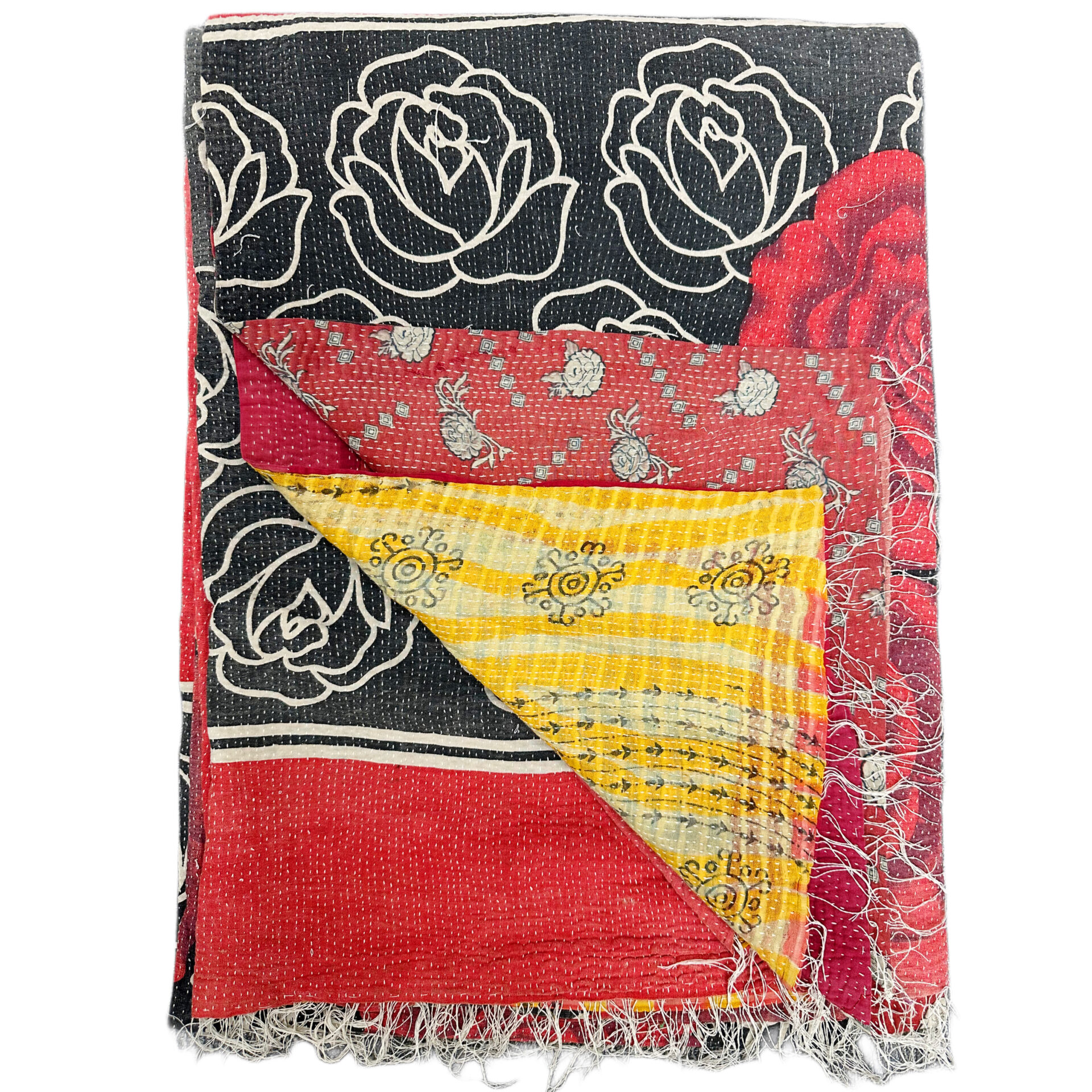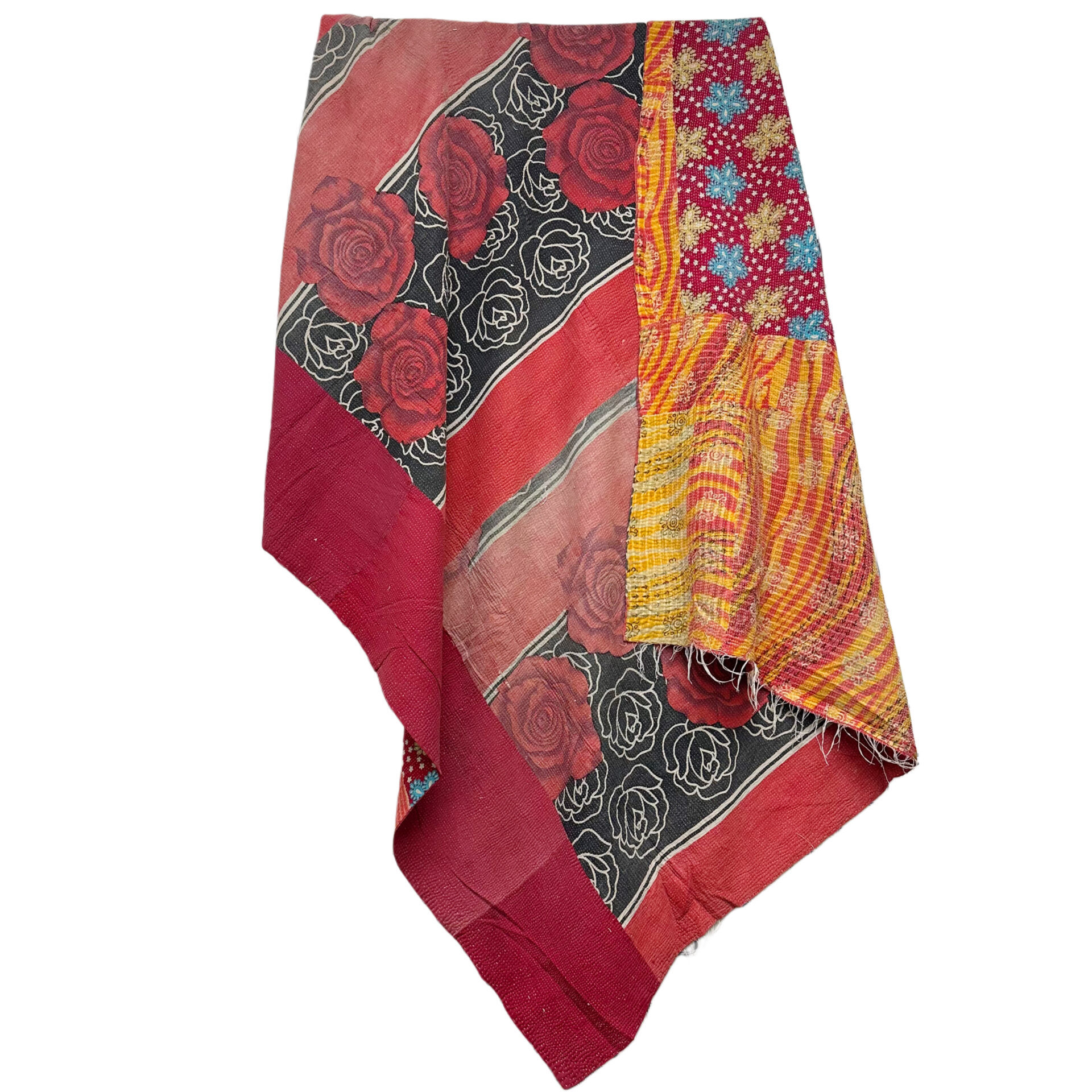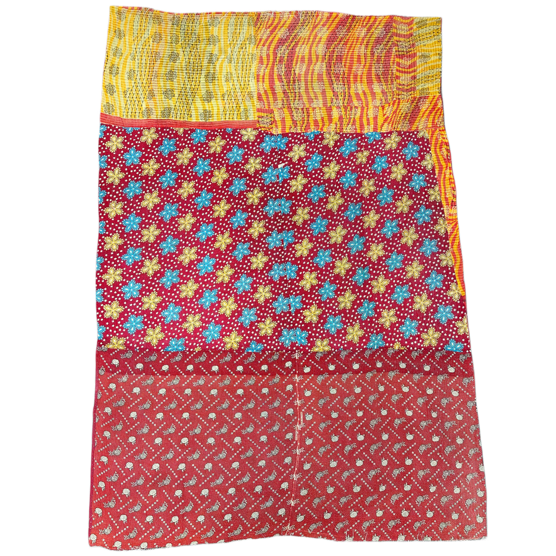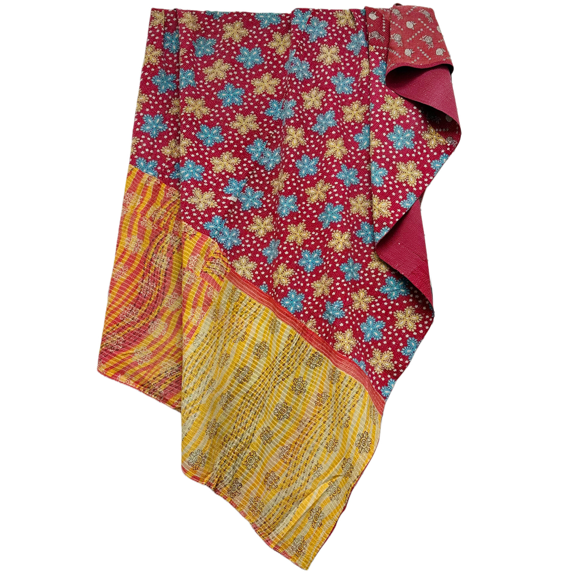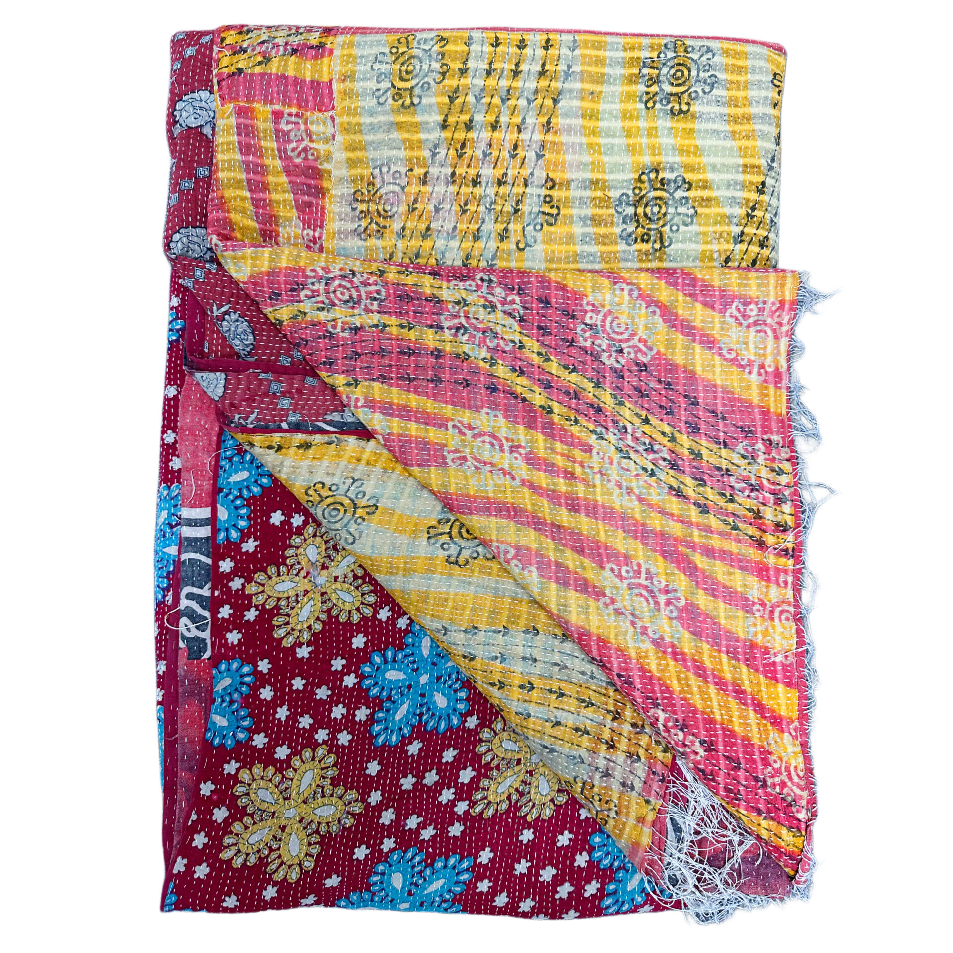 Our gorgeous “ONE OF A KIND ” Traditional Vintage Kantha Blankets are hand-stitched by Bengali women following the tradition of producing stunningly unique quilted blankets made out of discarded Sari’s and remnant fabrics. Each side is different which is why so many people are drawn to these Vintage Kantha’s. Some Kantha’s are heavier than others, but all are 100% Vintage. There will be some slight imperfections & stitched patches but not taking away from its beauty.