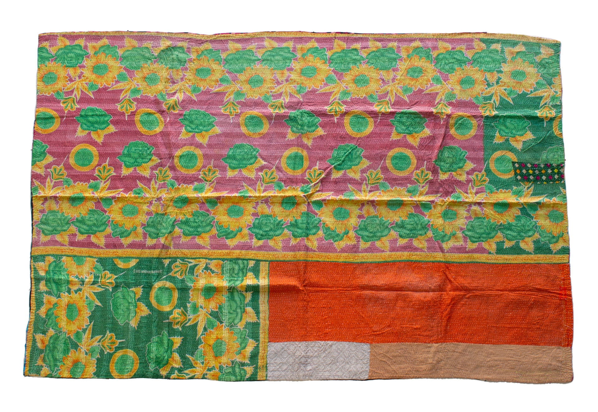 This is the exact Kantha blanket you’ll receive—individually selected, photographed, and ready to ship. Hand-stitched by Bengali women using layers of reclaimed cloth, each piece is part of a long-standing tradition that gives new life to discarded textiles.