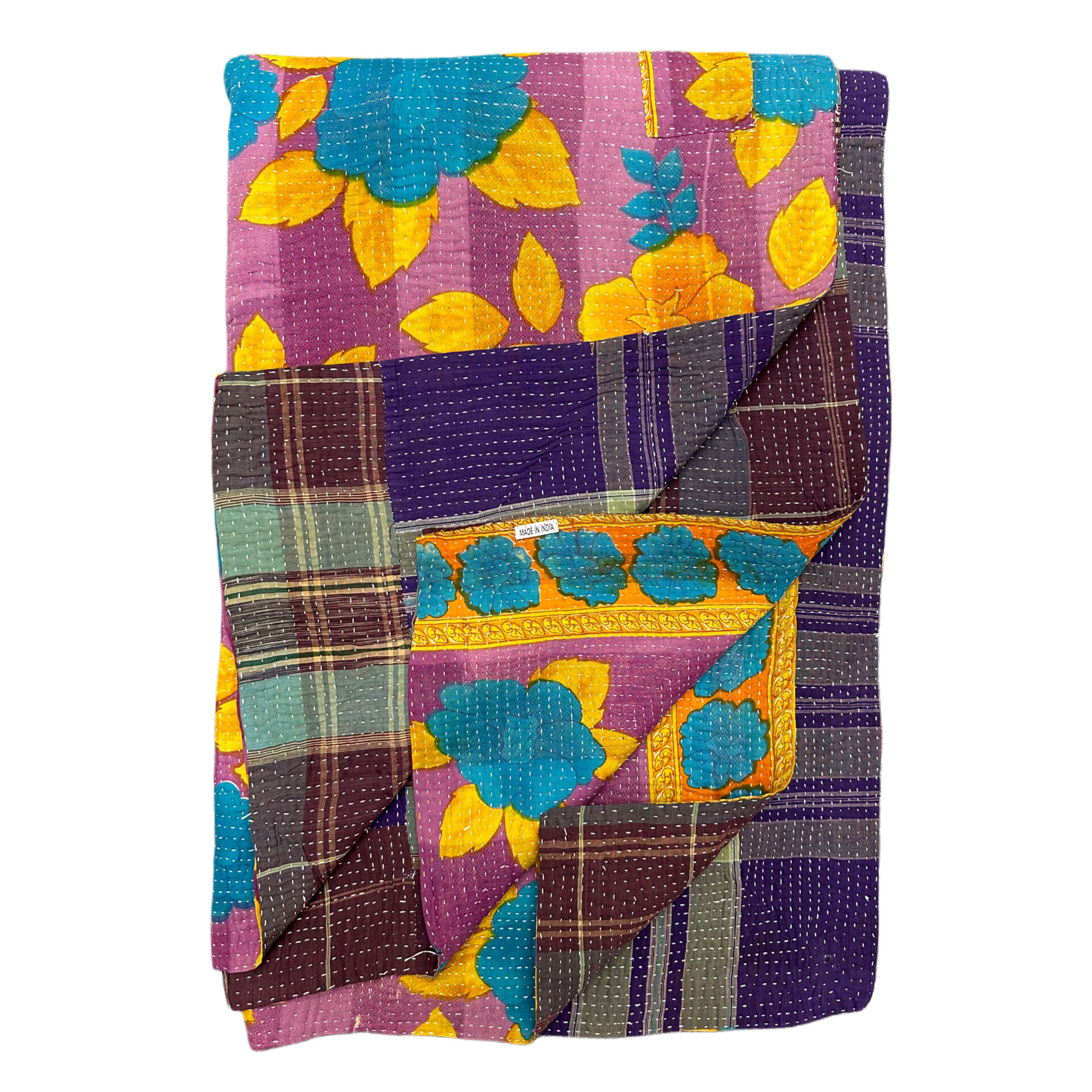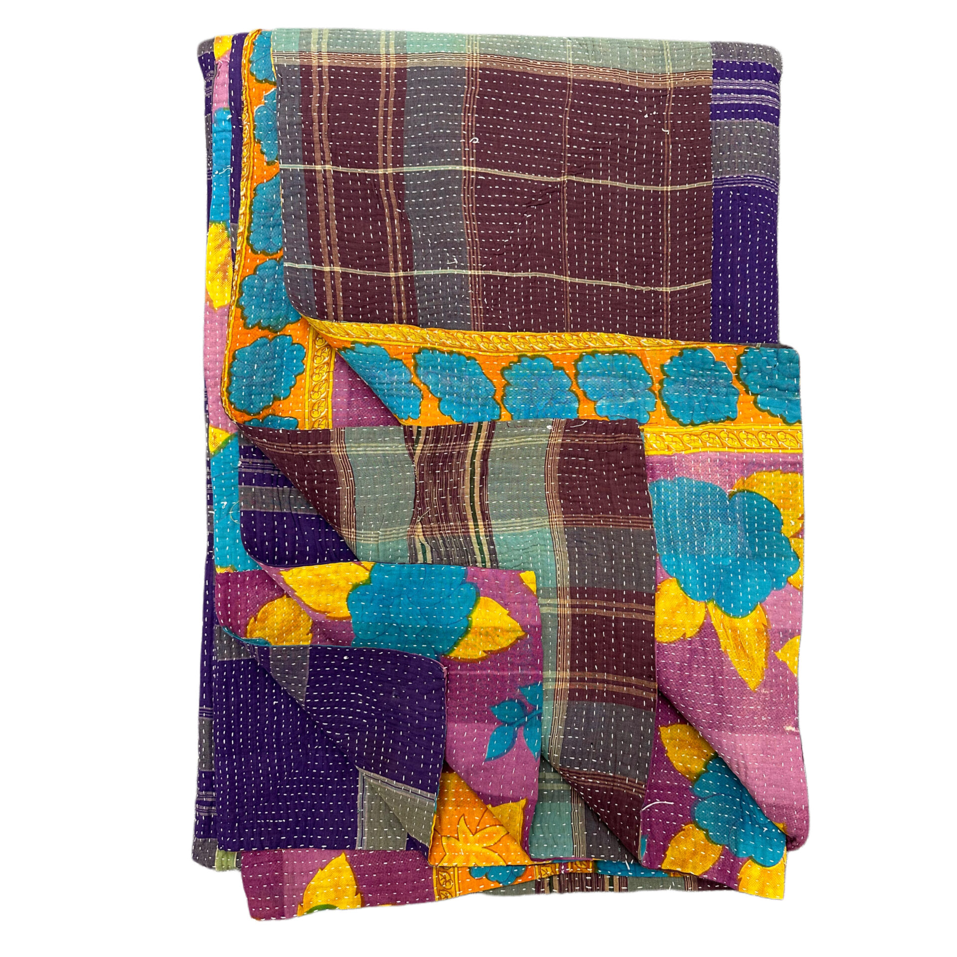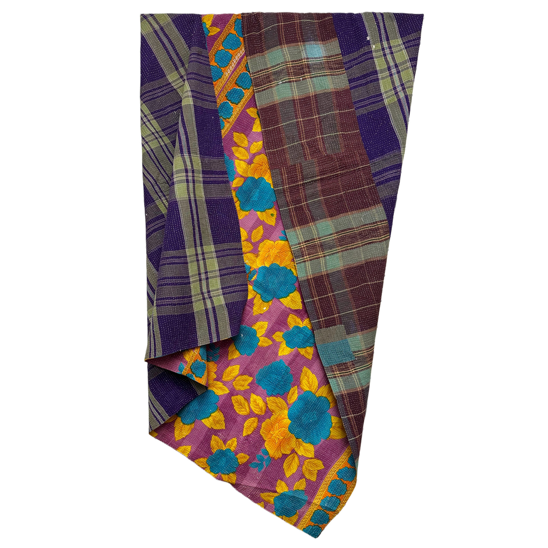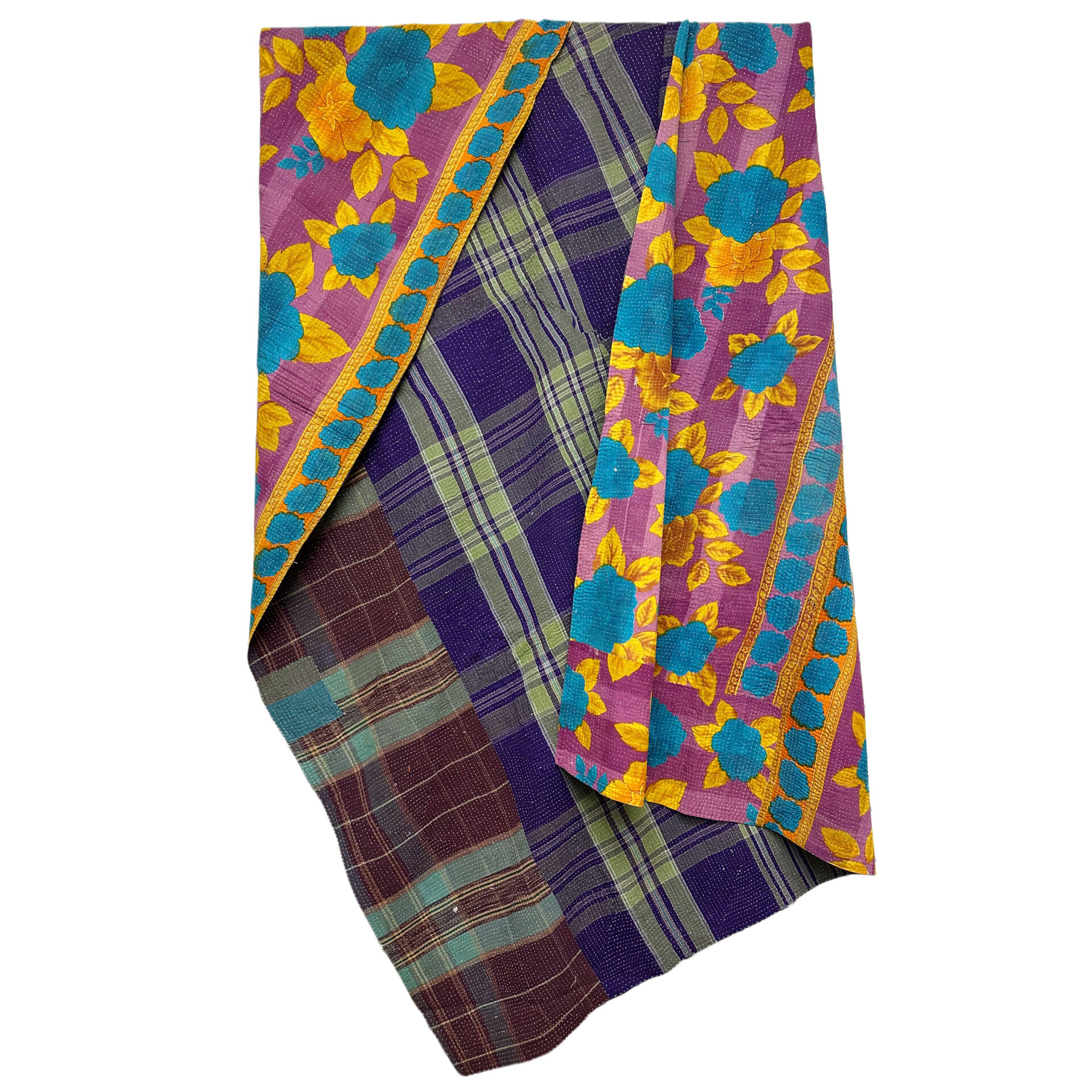 This is the exact Kantha blanket you’ll receive—individually selected, photographed, and ready to ship. Hand-stitched by Bengali women using layers of reclaimed cloth, each piece is part of a long-standing tradition that gives new life to discarded textiles.