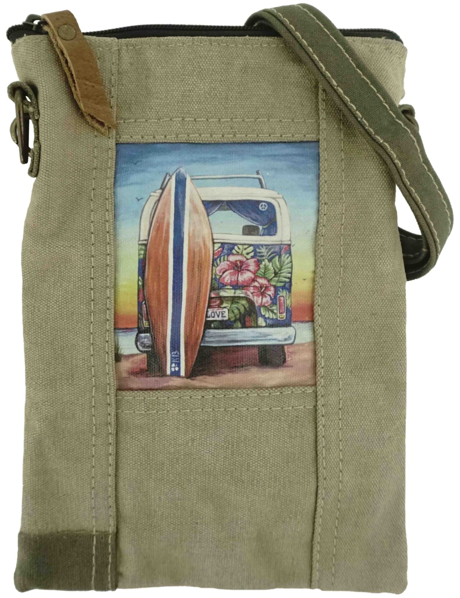Cute small recycled military tent crossbody adorned with a print patch on the front. Perfect to carry the very basics!